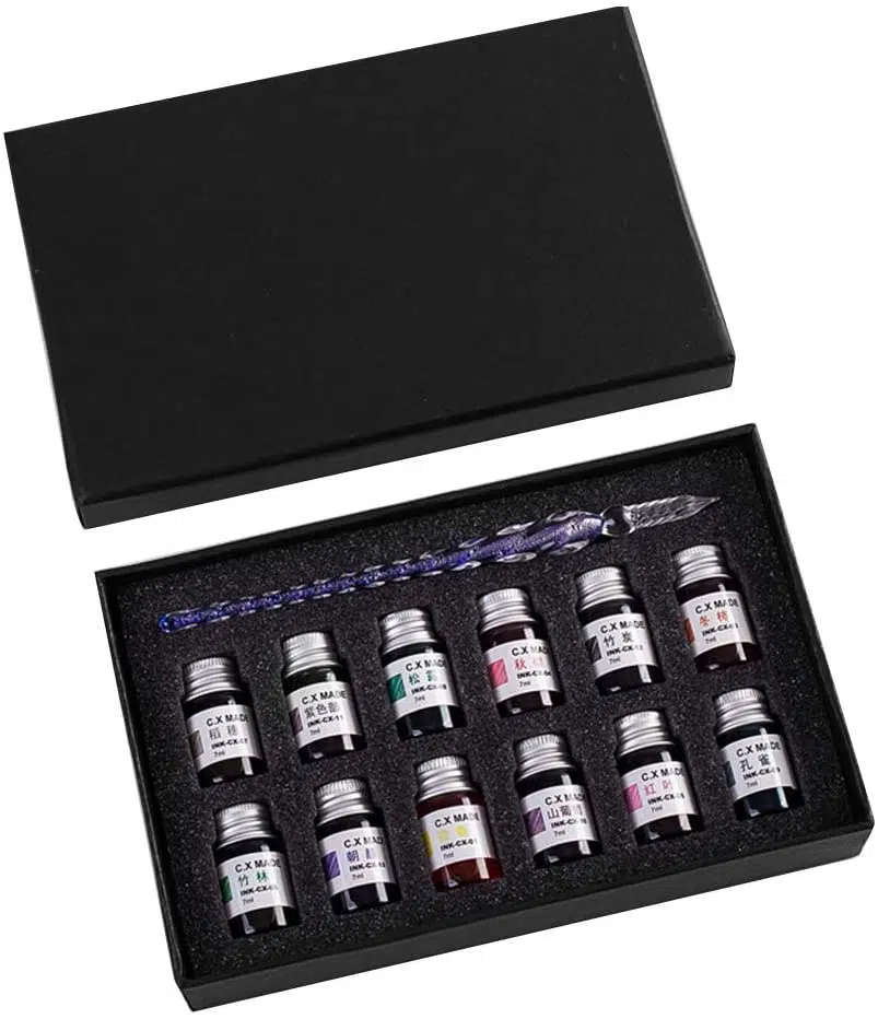 ♥ SANATSAL VE ÇOK YÖNLÜ: Bu imza kalemi çizim ve yazma için mükemmeldir. Yüksek borosilikat camdan yapılmıştır. Çeşitli mürekkep renkleri, el yazınızın ve resminizin daha muhteşem olmasını sağlayan altın tozu içerir.