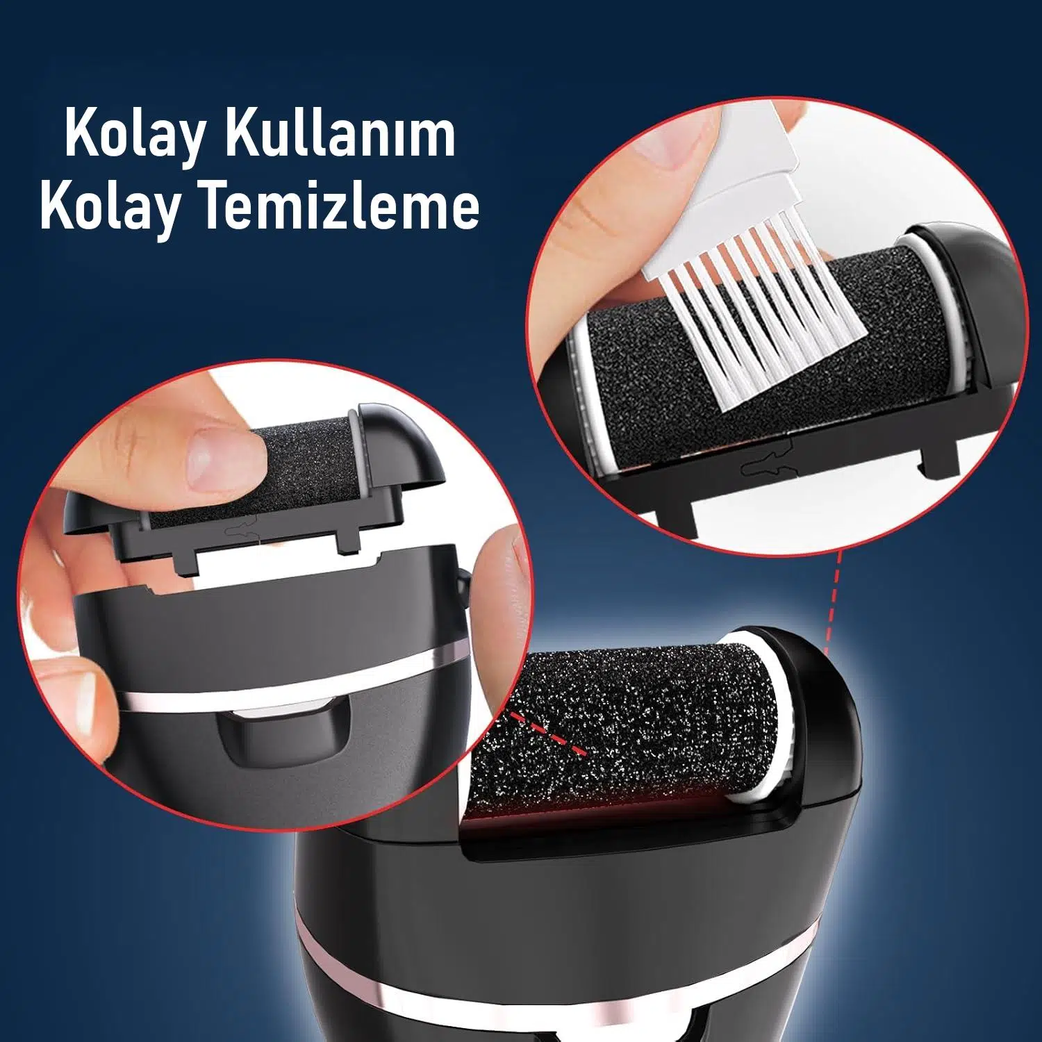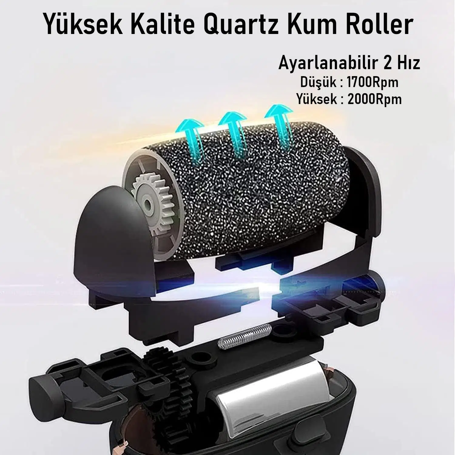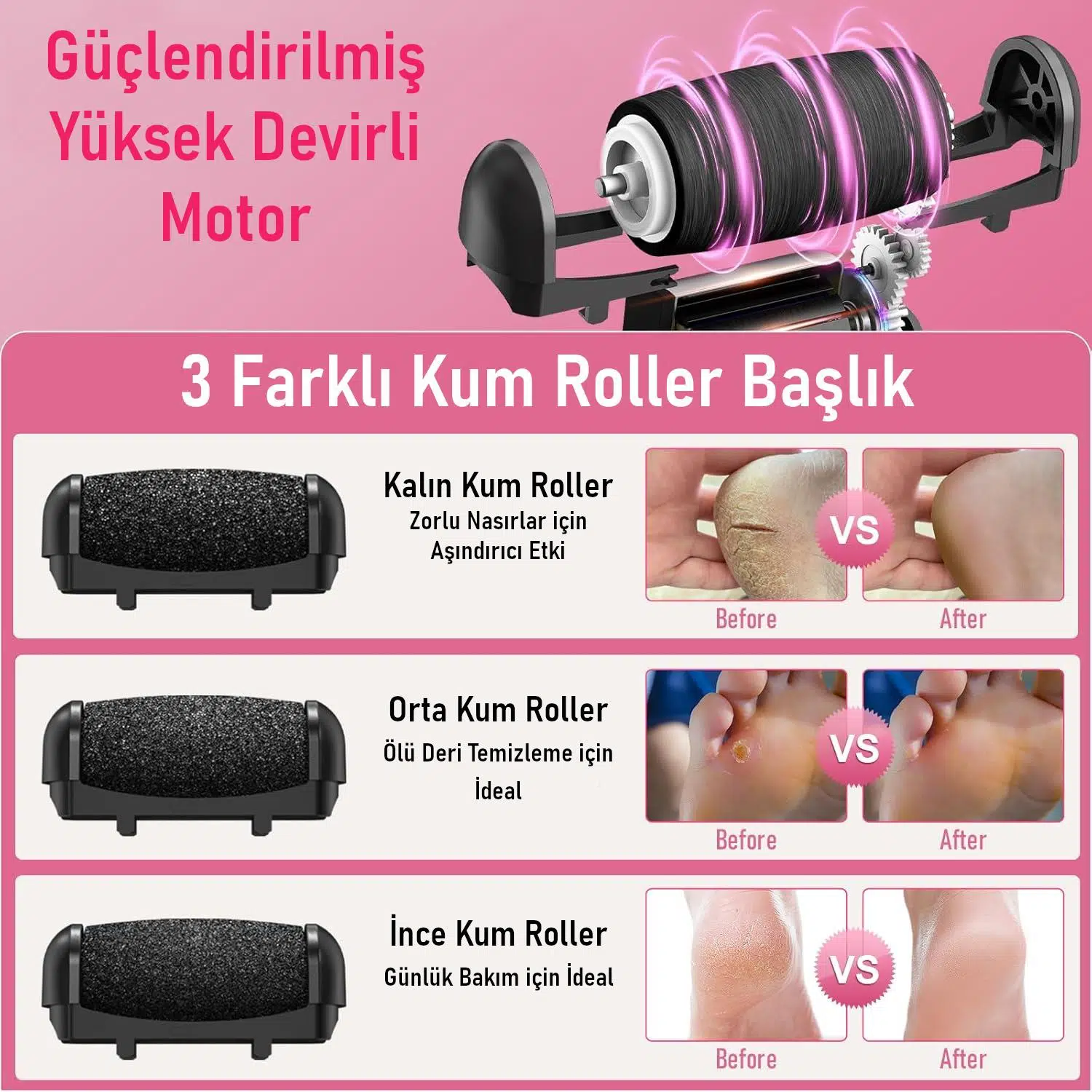 3 farklı roller başlık ile eksiksiz bakım: Kalın, orta ve ince kum roller.