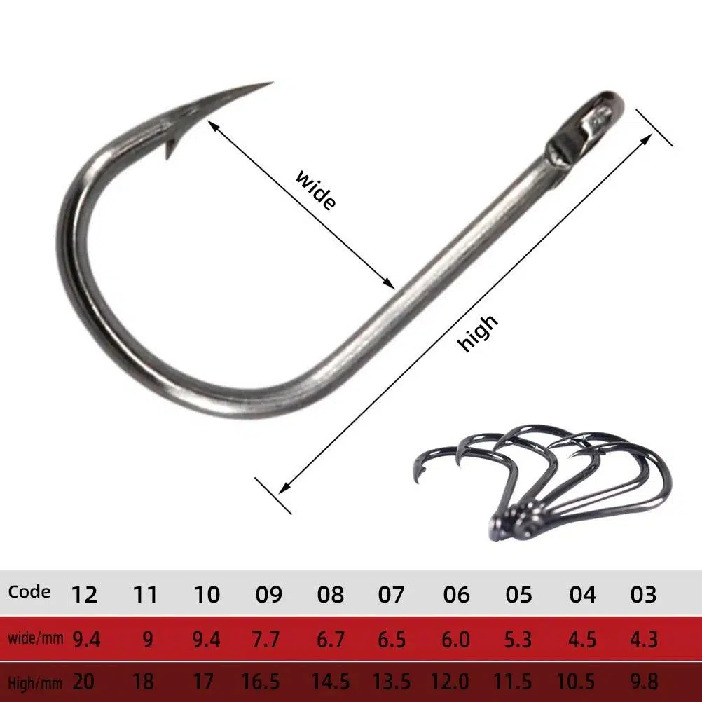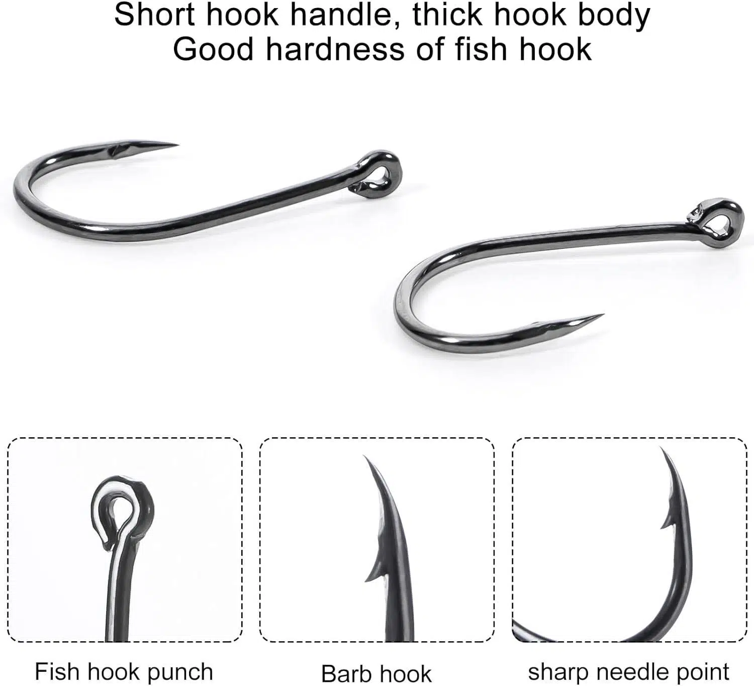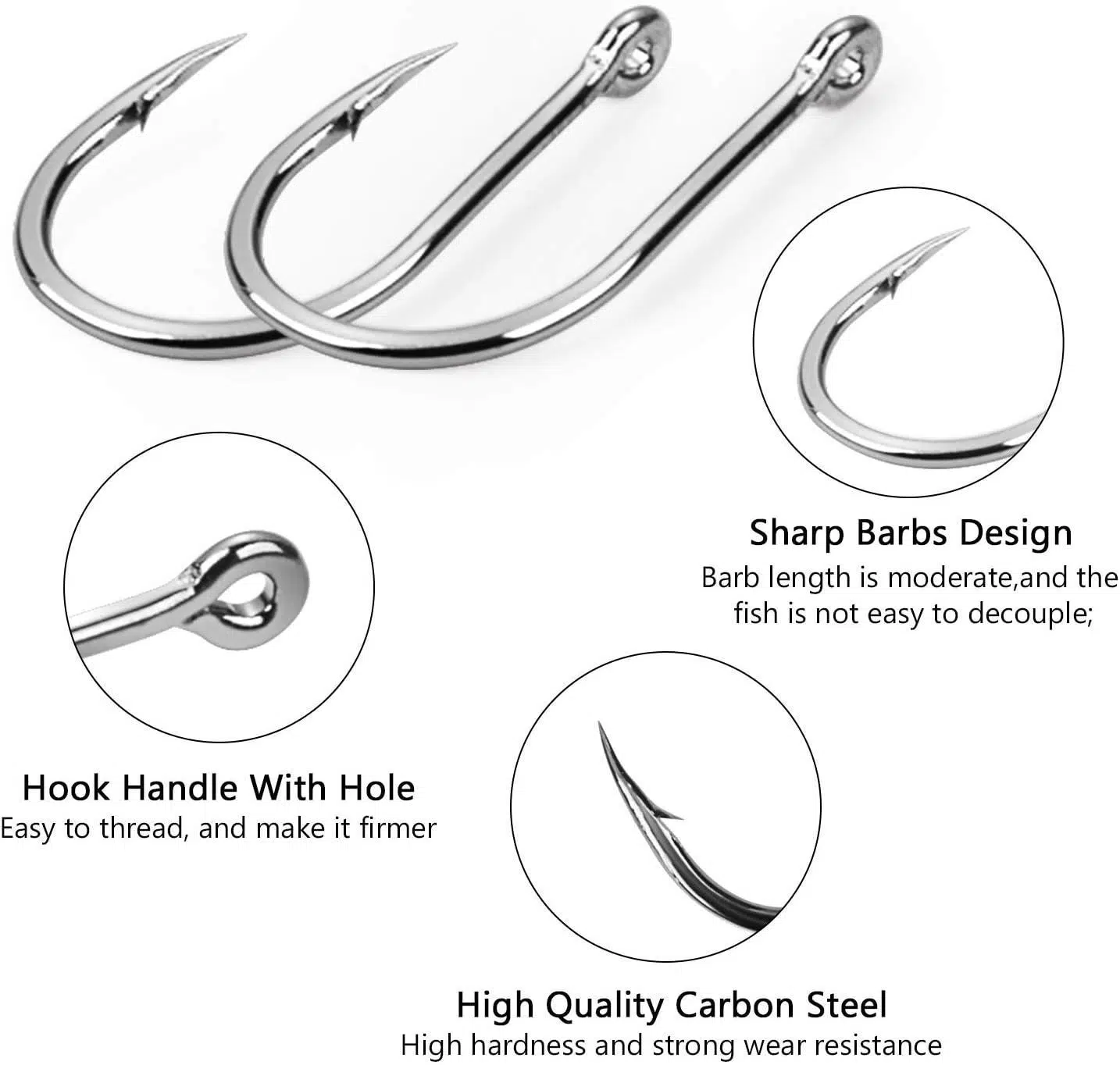 【Malzeme】Balık kancaları, son derece keskin, dayanıklı ve korozyona dayanıklı, tatlı su veya tuzlu suda balık tutabilen yüksek kaliteli karbon çelikten yapılmıştır.
