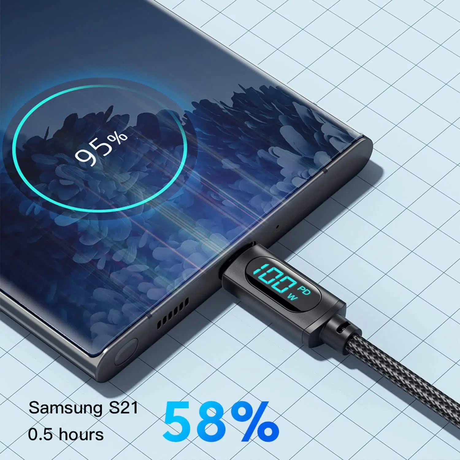 100W SÜPER HIZLI ŞARJ: Essager 5A/20V PD 100W hızlı şarj kablosu, şarj hızını bir sonraki seviyeye taşır. Hızlı şarj, Samsung S20'yi 30 dakikada %0'dan %80'e kadar şarj edebilir. Ayrıca MacBook Pro 16 inç'i 30 dakikada %0'dan @'a kadar şarj edebilir. Lütfen hızlı şarjı destekleyen bir duvar şarj cihazı kullanın.