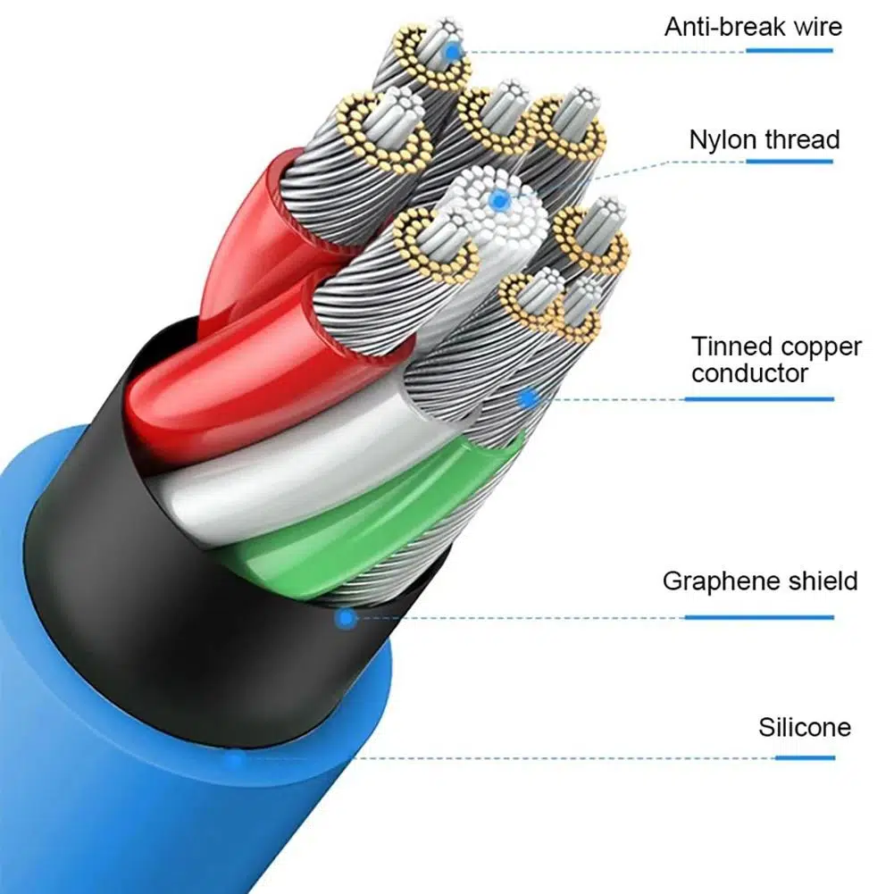 Bakır iç döşemesi, 6 amper hızlı şarj ve data transferi sağlar.