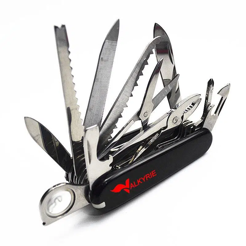 Valkyrie Multitool, tek bir kompakt gövdede 17 farklı profesyonel fonksiyonu birleştirir. Kamp, doğa yürüyüşü, balıkçılık, avcılık, acil durum setleri, otomobil ve ev tamiratları için ideal bir araçtır.