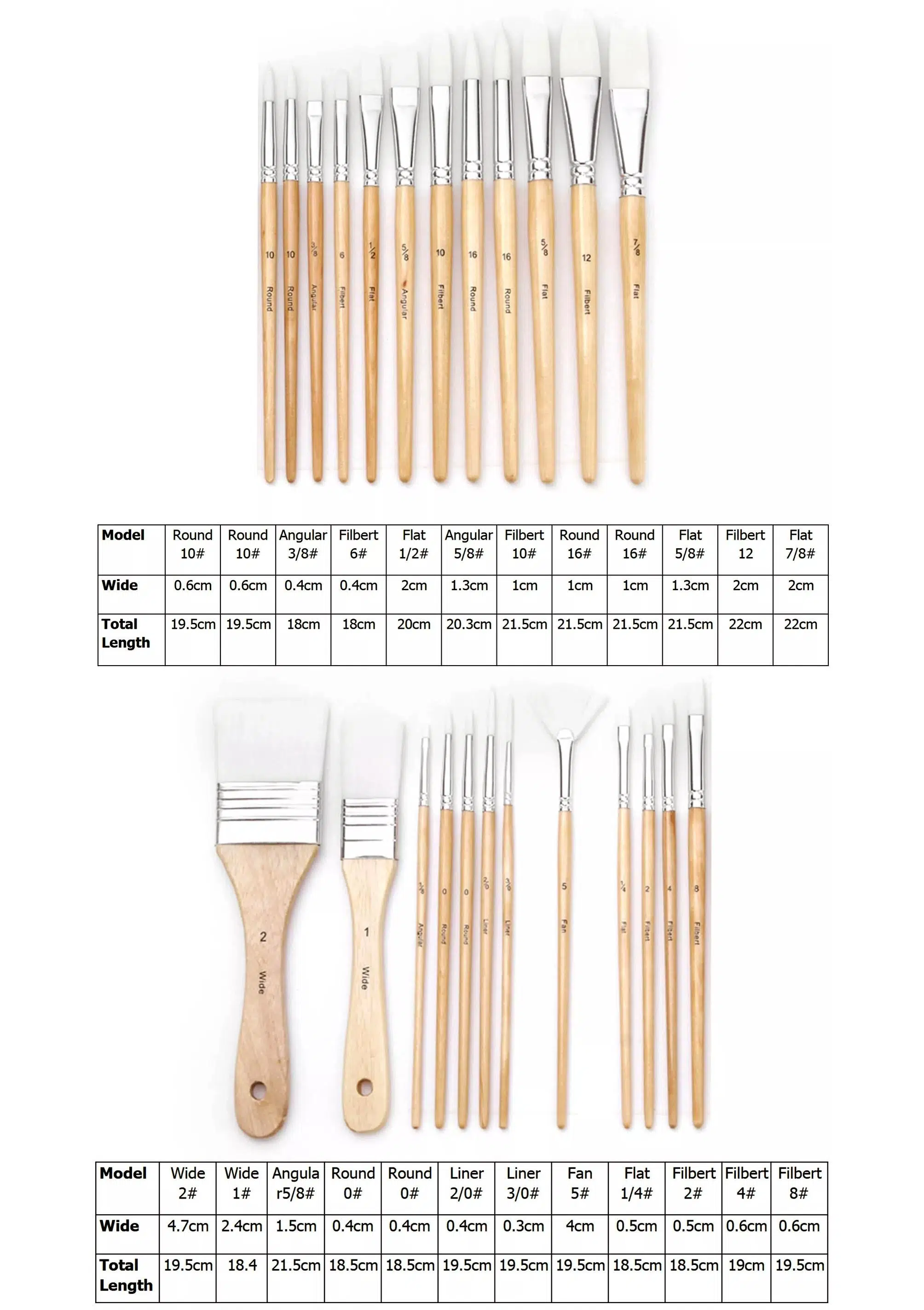 Fırça boyları 1/8# ile 2# arası değişmektedir.