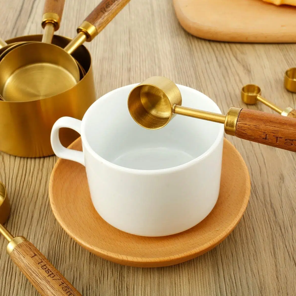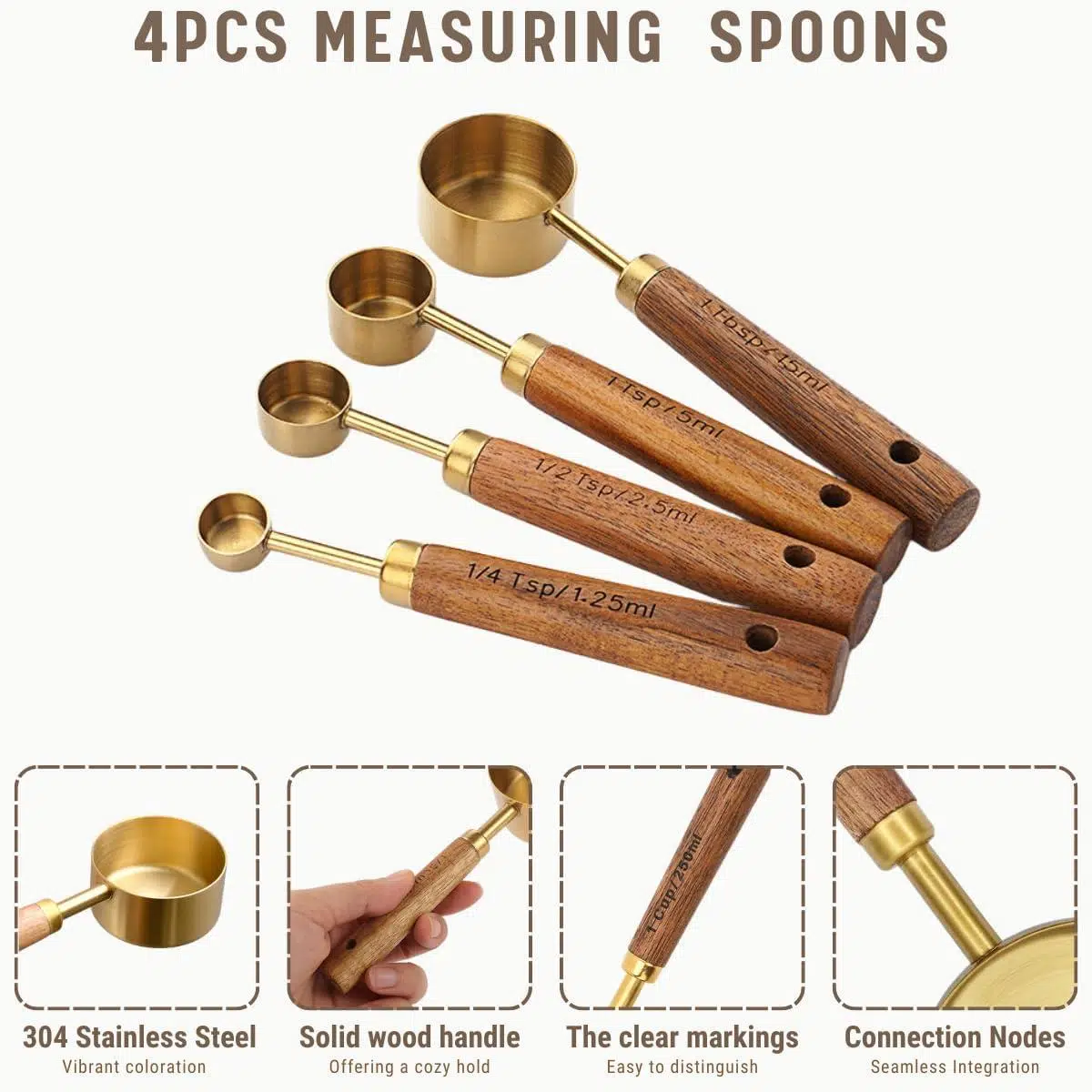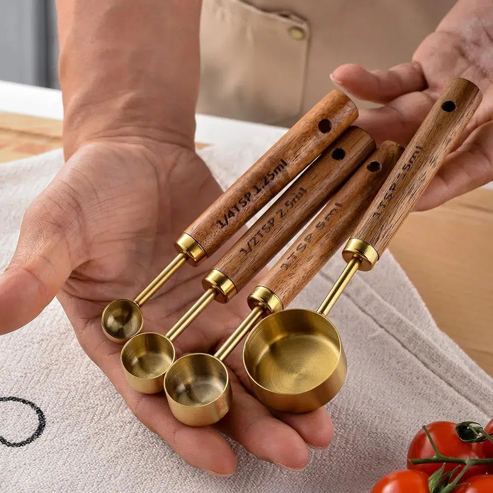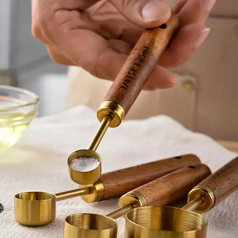 * KAYMAZ AHŞAP AKASYA SAP: Ölçüm bardak ve kaşık setinin sapı, kavrama rahat ve sağlam olan doğal ahşap malzemeden yapılmıştır; ve arayüz, sağlam ve güçlü olan altın ahşap kakma teknolojisini benimser.