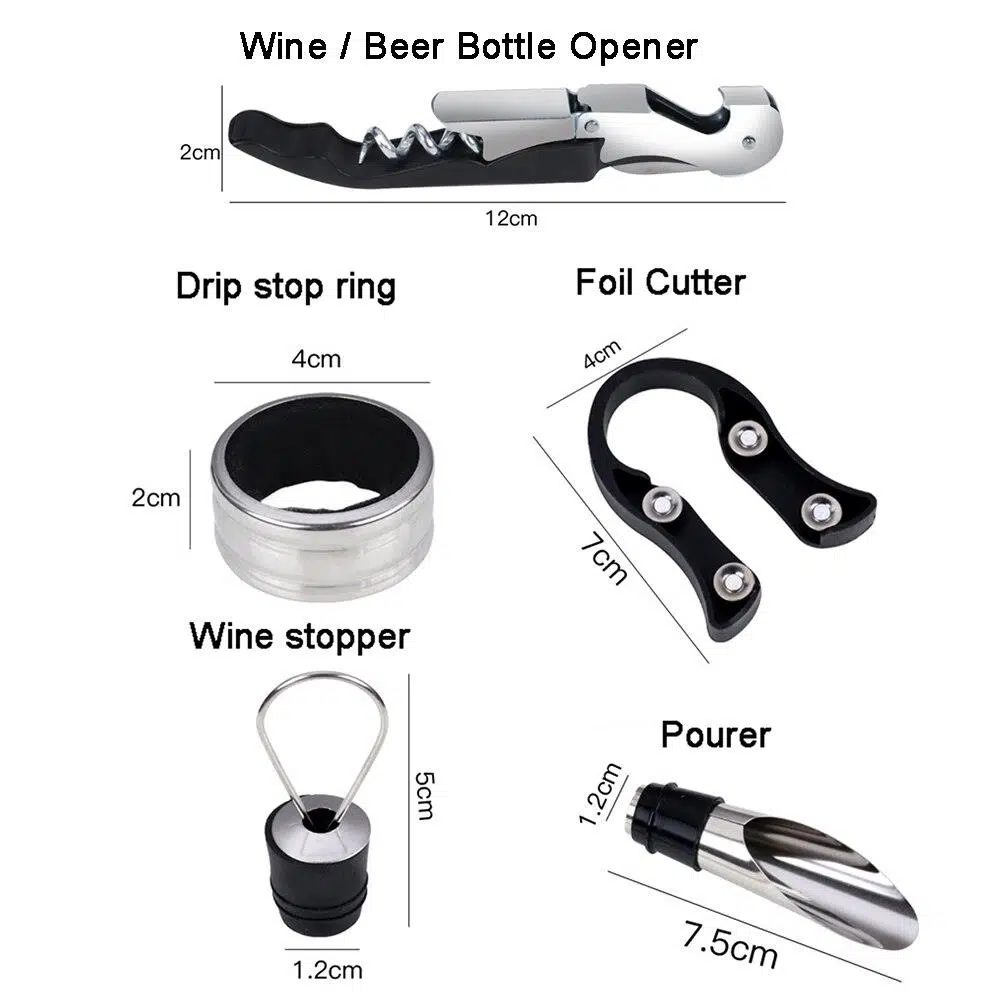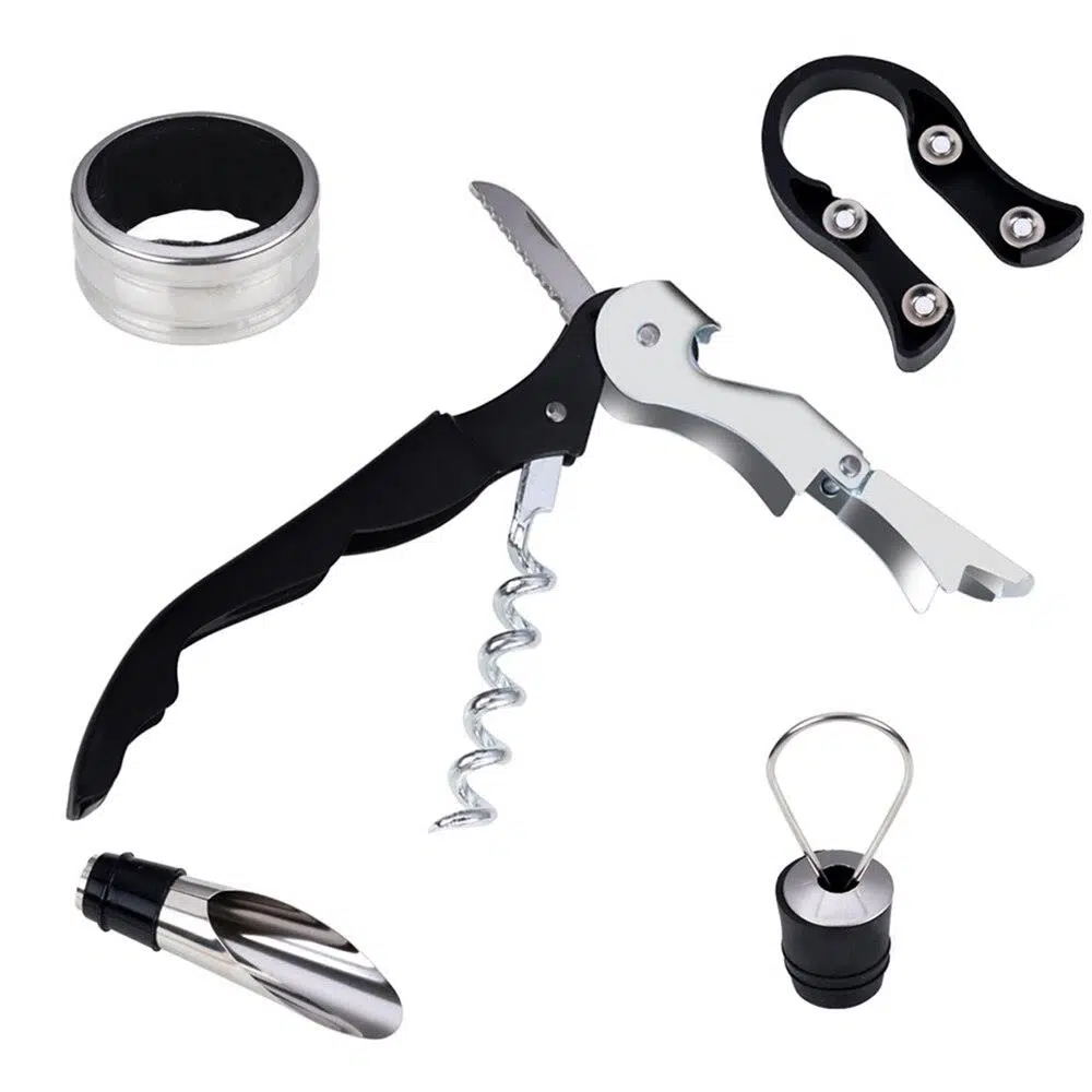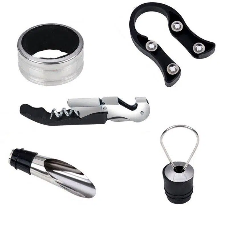 Ambalaj miktarı: 5 adet/takım(Çok işlevli denizatı bıçağı, şarap tıpası, şarap akıtıcısı, damlama halkası, folyo kesici içerir)