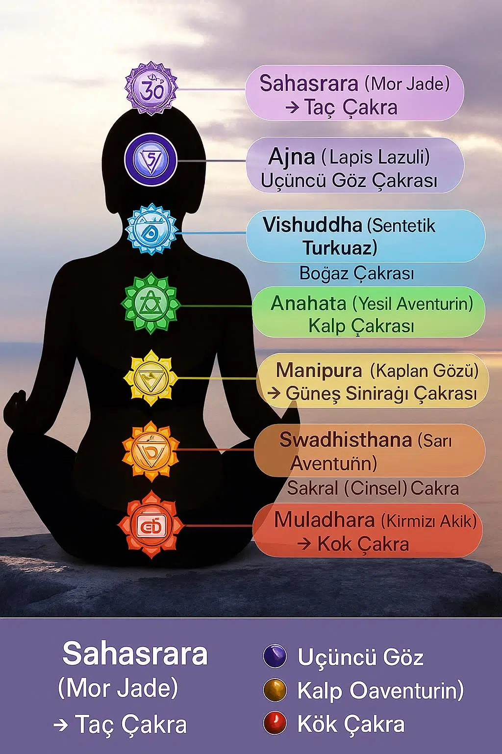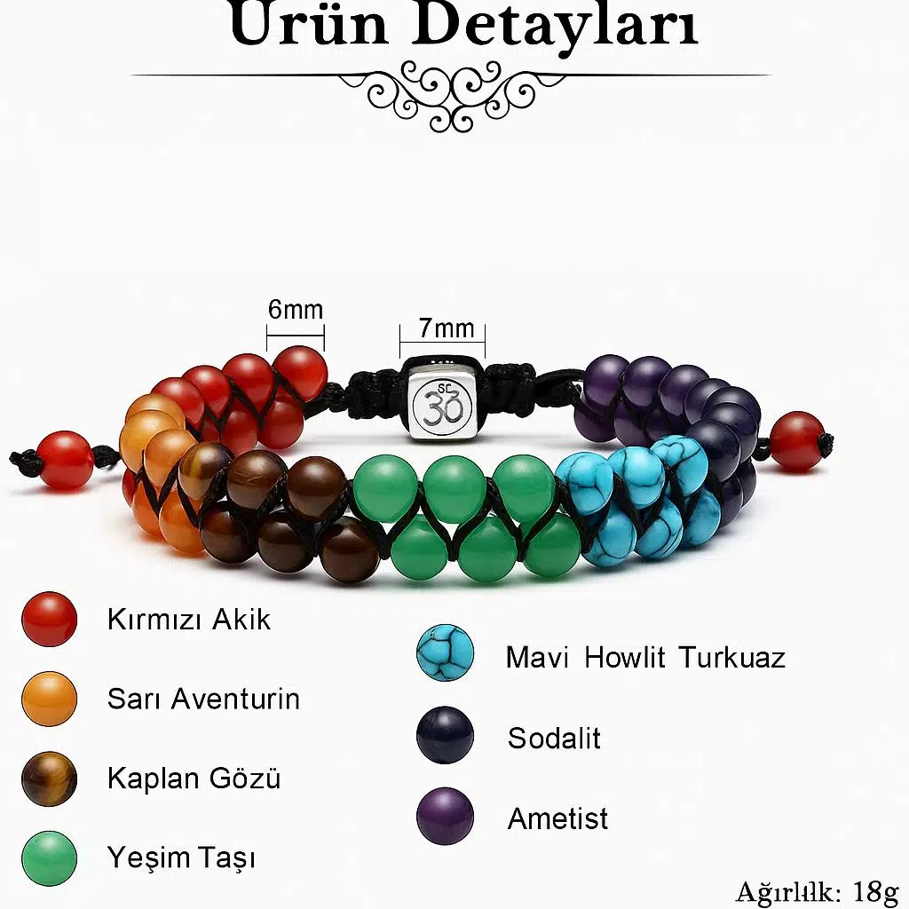 Renk: Çakra renkleri – premium parlaklık
