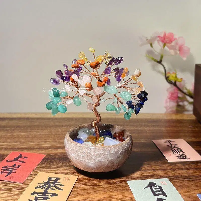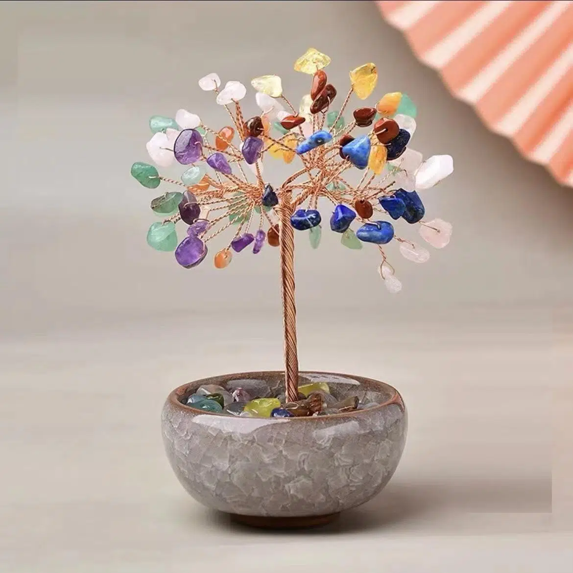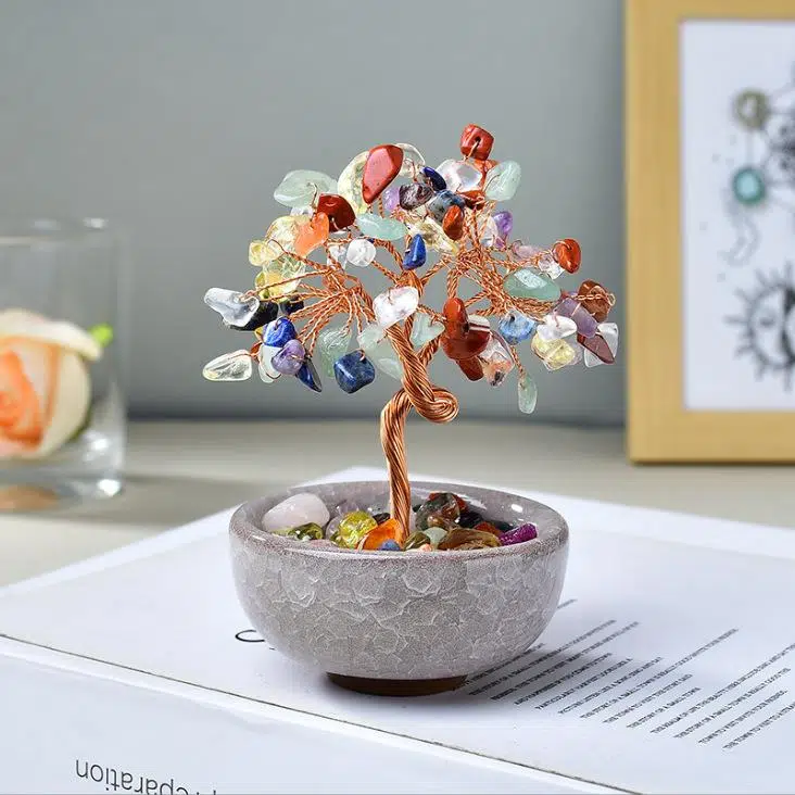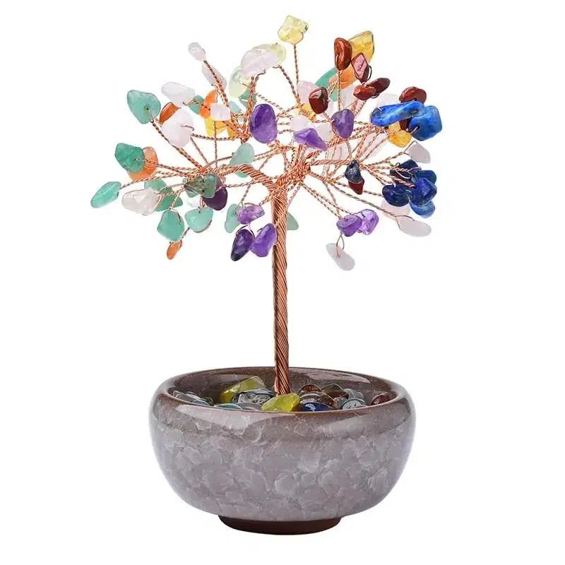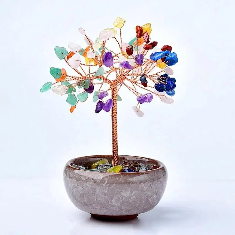 7 çakra ağacı, doğal taş enerji ağacı, kristal taşlı dekoratif obje, feng shui aksesuar, meditasyon dekoru, doğal taş çakra ağacı, şifa taşı ağaç, enerji dengeleyici kristal, spiritüel dekoratif aksesuar, pozitif enerji objesi.