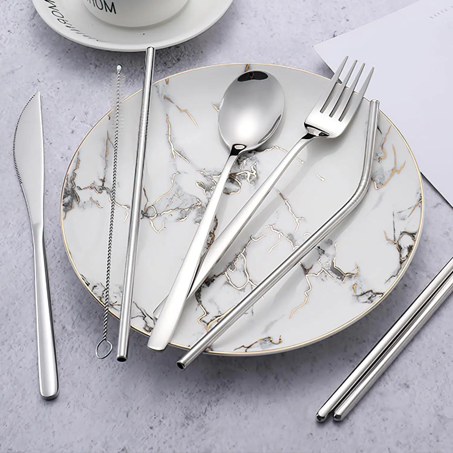 * Çatal, bıçak, kore kaşık, 2 adet metal pipet ve metal yemek çubukları (chopsticks), pipet temizleme fırçası ile 8 parça komple settir.