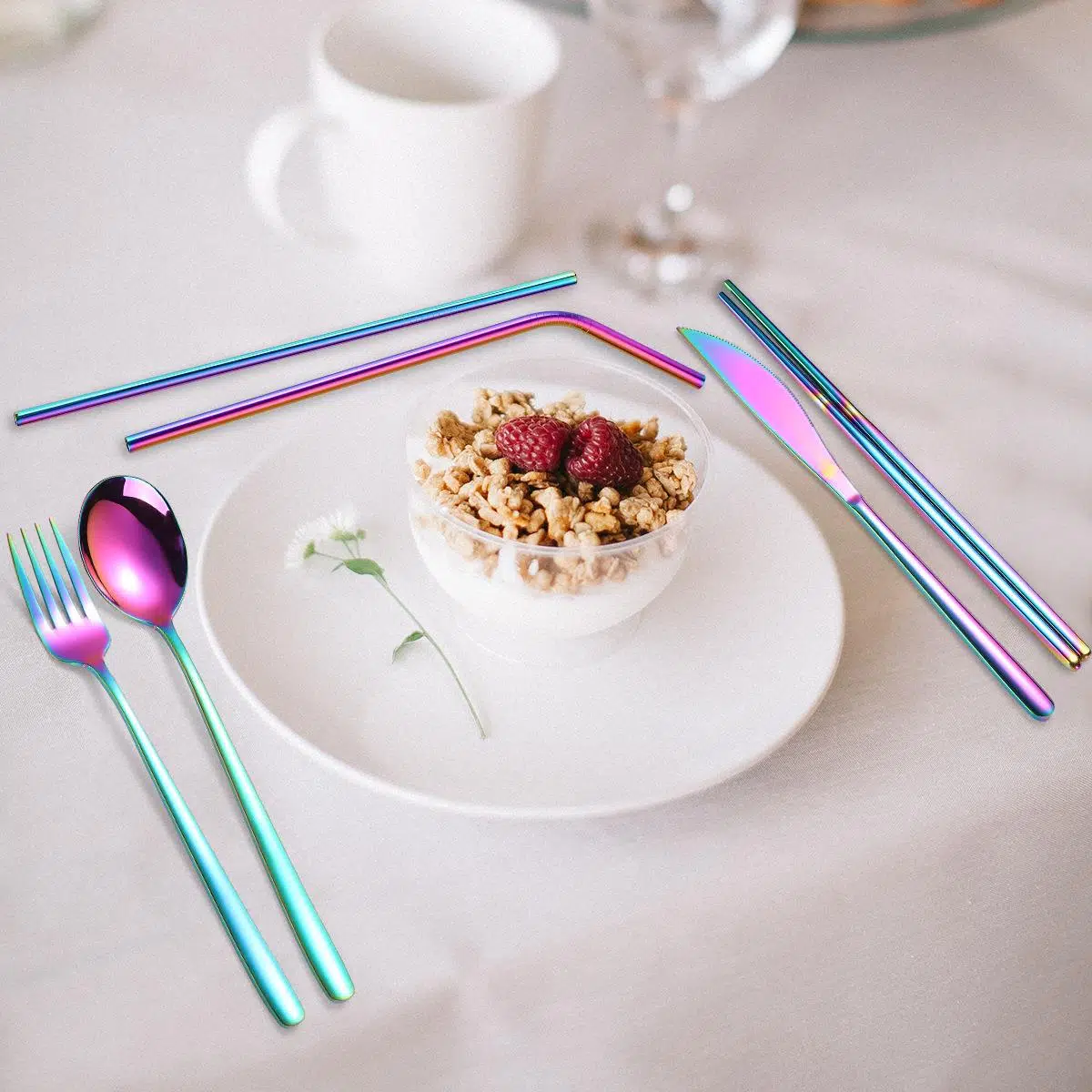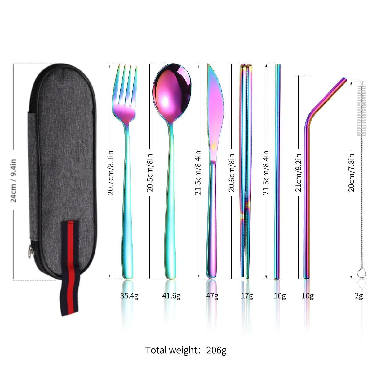 * Çatal, bıçak, kore kaşık, 2 adet metal pipet ve metal yemek çubukları (chopsticks), pipet temizleme fırçası ile 8 parça komple settir.