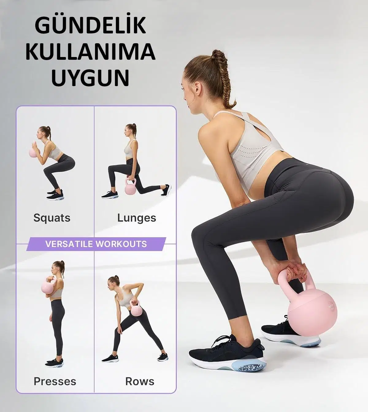 5. Yumuşak Kettlebell'lerle Çok Amaçlı Antrenman: Yumuşak kettlebell'imiz, sallama, squat ve kapma gibi çeşitli egzersizler ve kuvvet antrenmanı için mükemmeldir. Ev spor salonları ve kişisel antrenman seansları için uygun çok yönlü kettlebell setimizle genel sağlığınızı ve zindeliğinizi geliştirin