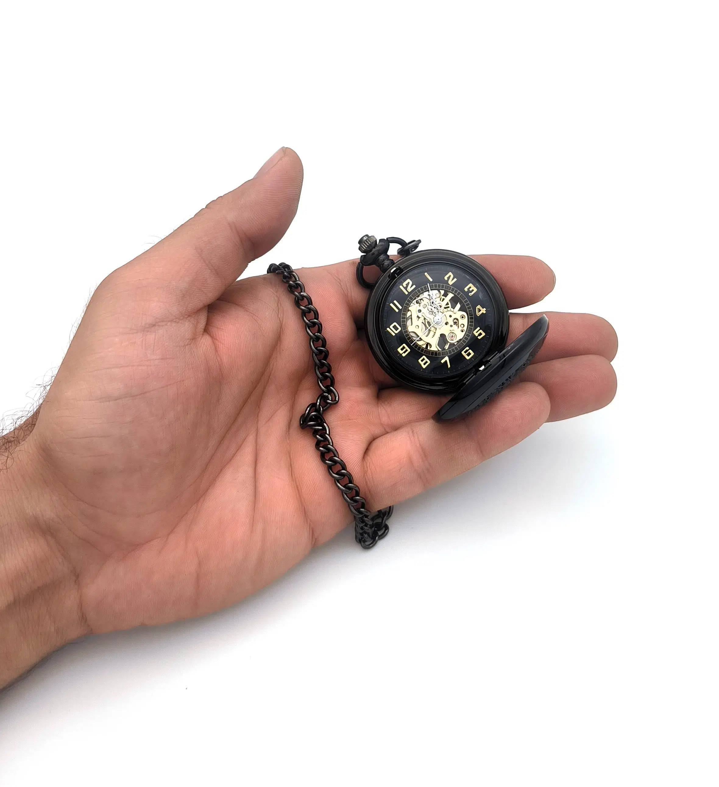 Zamanın işleyişini gözler önüne seren bu özel tasarım mekanik cep saati ile stilinize derinlik katın. Klasik cep saati zarafetini, modern iskelet (açık kadran) tasarımıyla birleştiren bu saat, her bakışta hayranlık uyandıracak bir sanat eseridir.