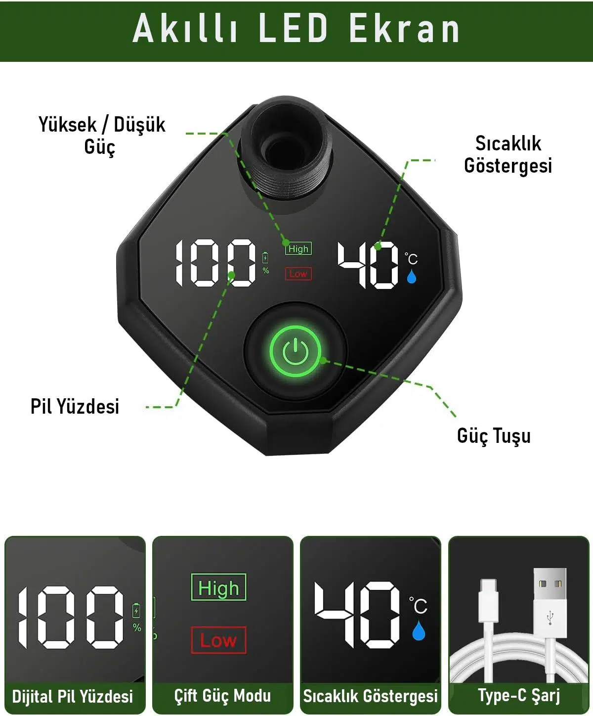 Hem dayanıklı ve taşınabilir yapısı hem de akıllı LED ekranı sayesinde kullanımınızı kontrol altında tutar. USB şarjlı tasarımı ile uzun süreli kullanım sağlar.