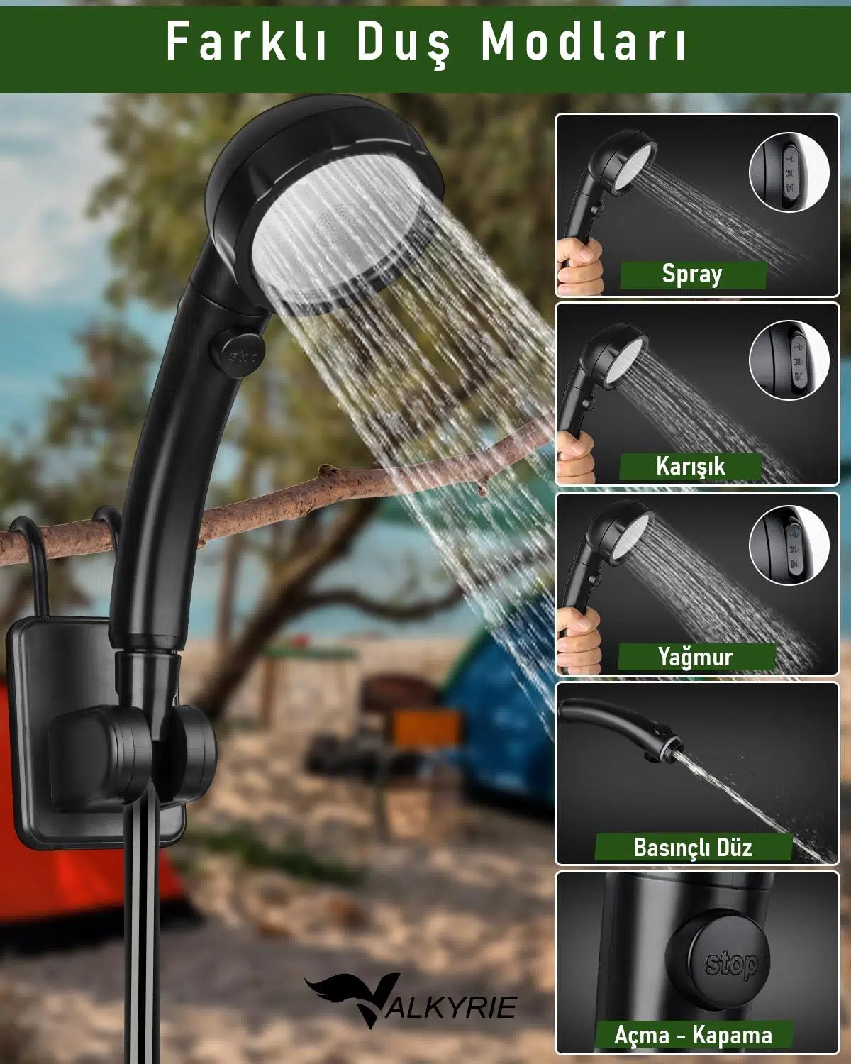 | Kurulum | Hızlı & Kolay Valkyrie Akıllı LED Ekranlı Taşınabilir Duş ve Su Pompası – Kamp, Seyahat, Bahçe ve Ev Kullanımı için Mükemmel Çözüm! Kamp yapmayı seviyorsanız, bahçenizde pratik çözümler arıyorsanız veya seyahatlerinizde suya kolay erişim istiyorsanız, Valkyrie Akıllı LED Ekranlı Taşınabilir Pompa tam size göre! Hem taşınabilir yapısı hem de şarjlı sistemi sayesinde elektrik veya tesisata ihtiyaç duymadan her yerde su kullanma imkânı sunar. LED göstergeli akıllı tasarım, kullanımınızı daha güvenli ve pratik hale getirir. Şarj durumu ve su akışını tek ekranda görerek kontrol edebilirsiniz. Yüksek performanslı motoru, güçlü su basıncı sağlar ve hem duş almak hem de temizlik yapmak için idealdir. Neden Valkyrie Taşınabilir Duş Pompası?✔ Kolay Kurulum & Kullanım: Sadece birkaç dakika içinde kurulumu tamamlayın, her yerde kullanın. Kimler İçin Uygun?