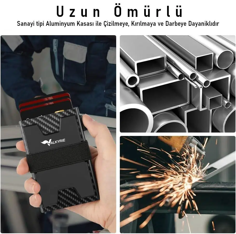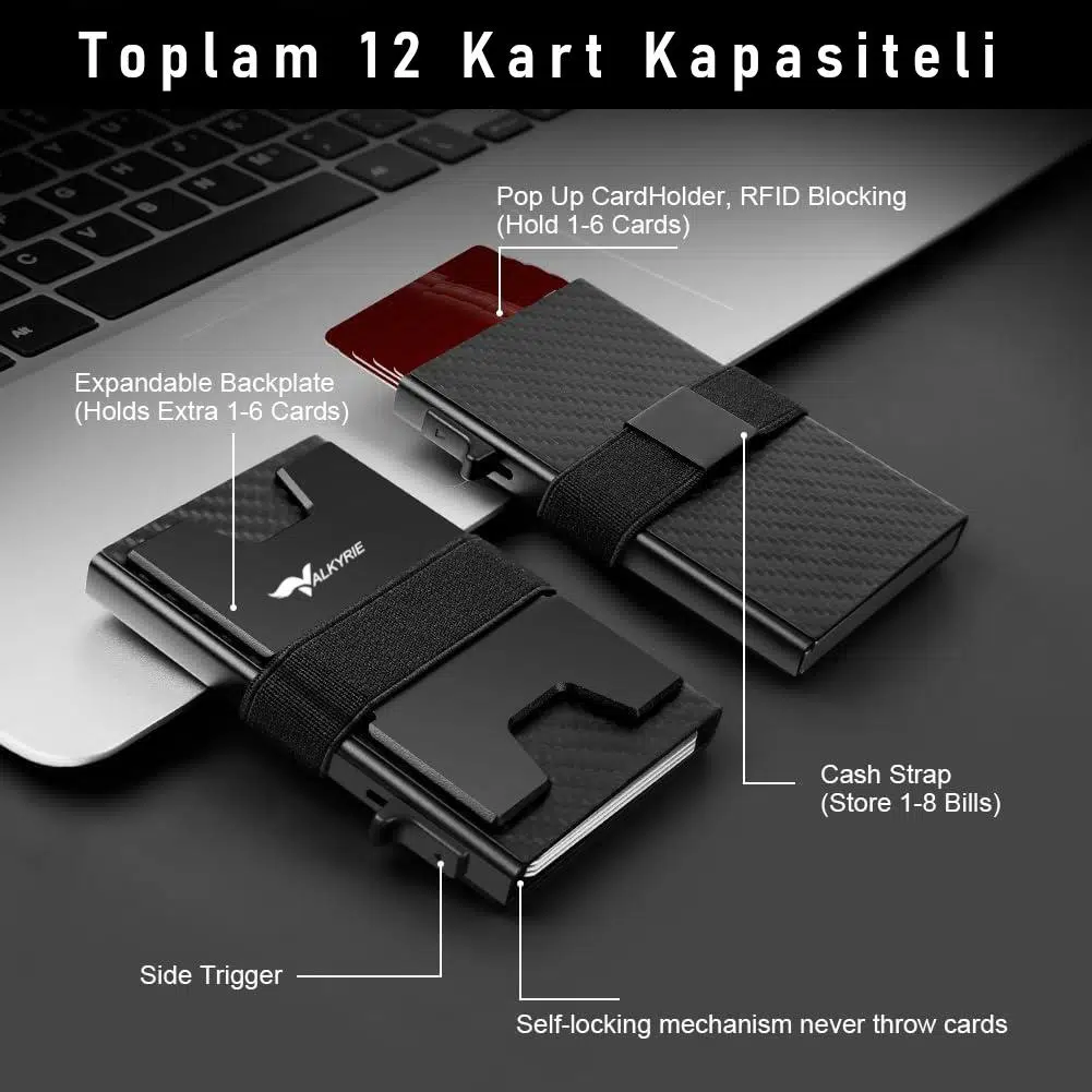 | Etiketler | Valkyrie Akıllı Mekanizmalı Karbon Fiber Kasa RFID Korumalı Cüzdan Kredi Kartlık 15 Kart Kapasiteli Kartlık Karbon |