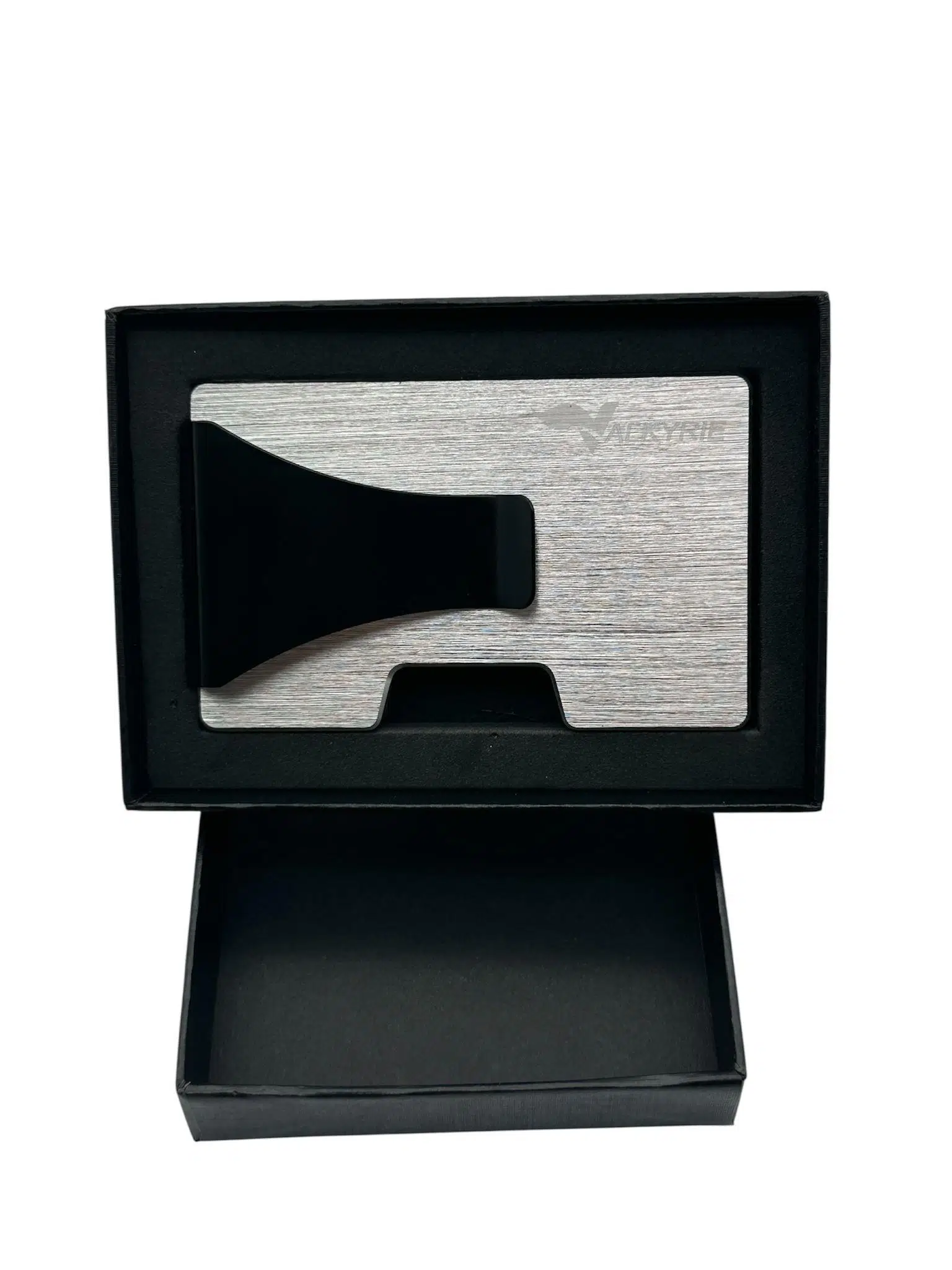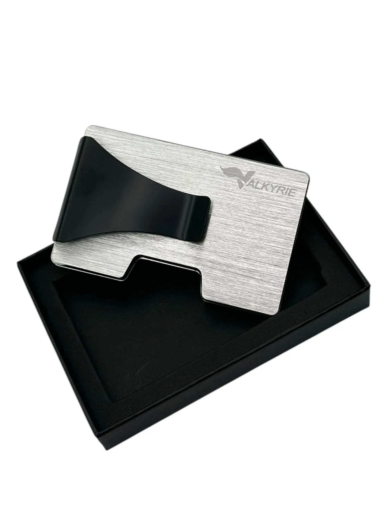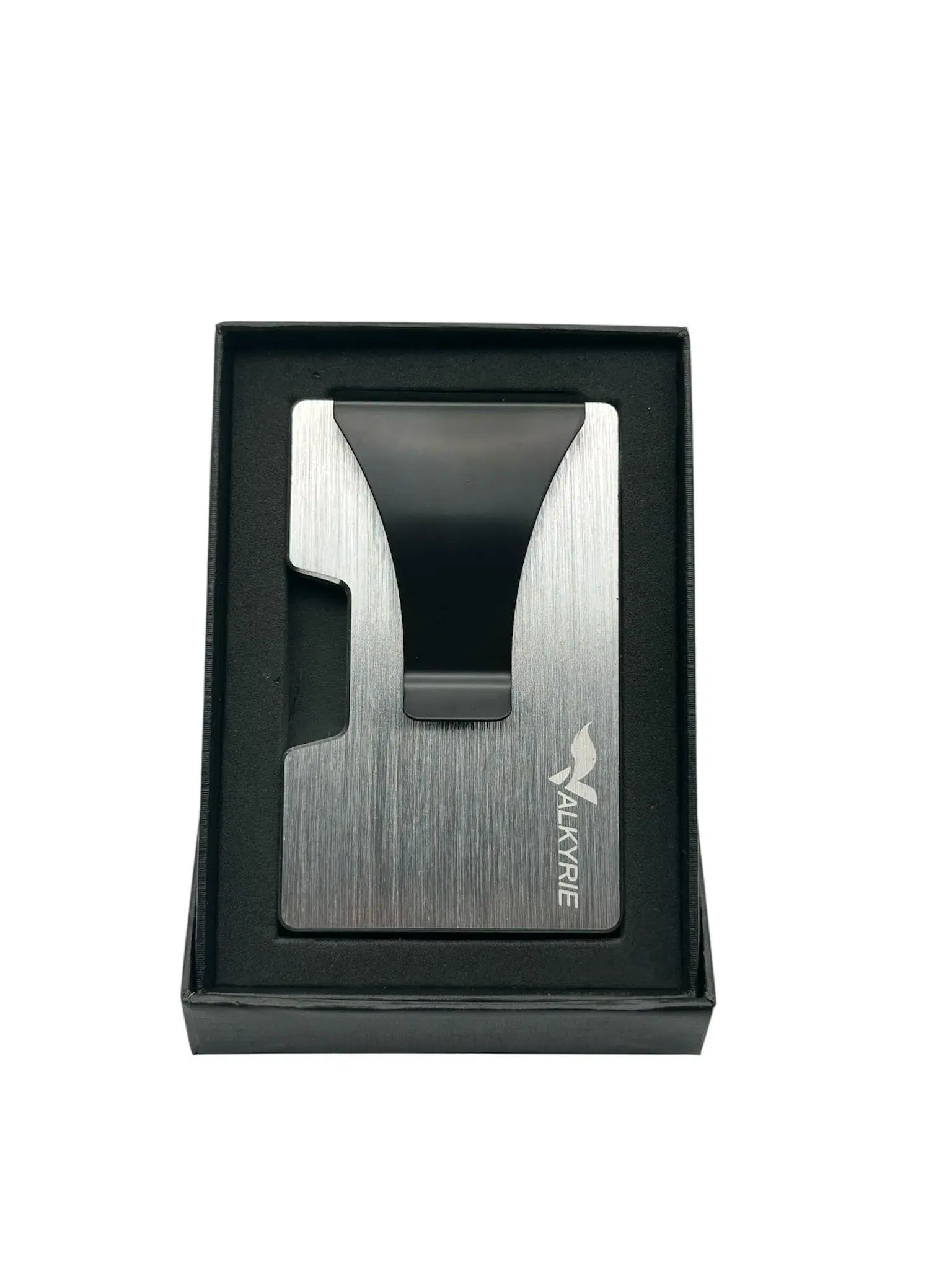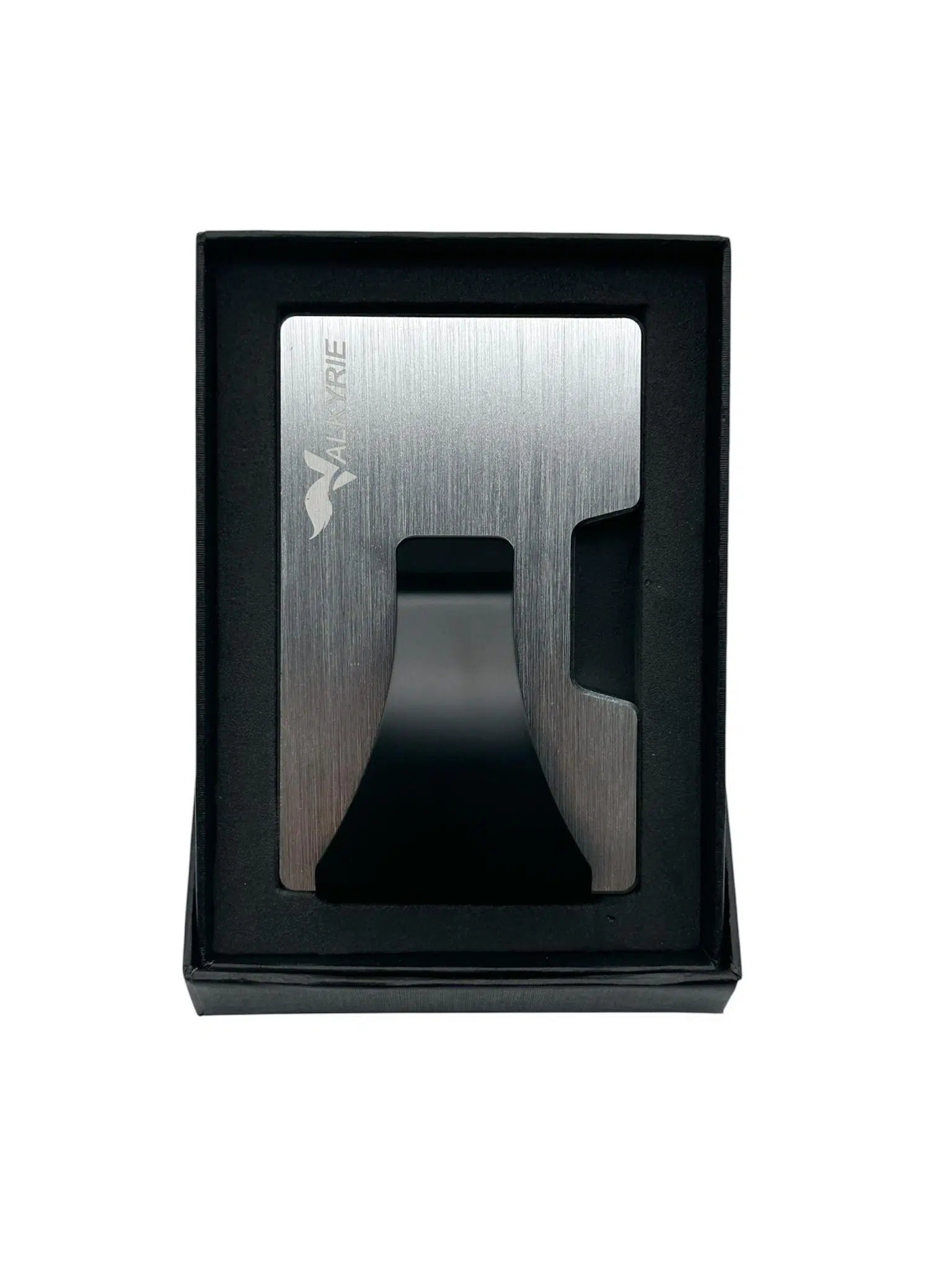 Valkyrie Metal Kartlık, modern çizgileriyle şıklığı ve işlevselliği bir araya getiriyor. Fırçalanmış alüminyum gövdesi ve güçlü metal klipsi sayesinde hem kartlarınızı düzenli tutar hem de cebinizde veya çantanızda yer kaplamaz.