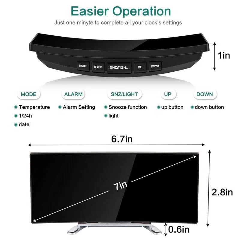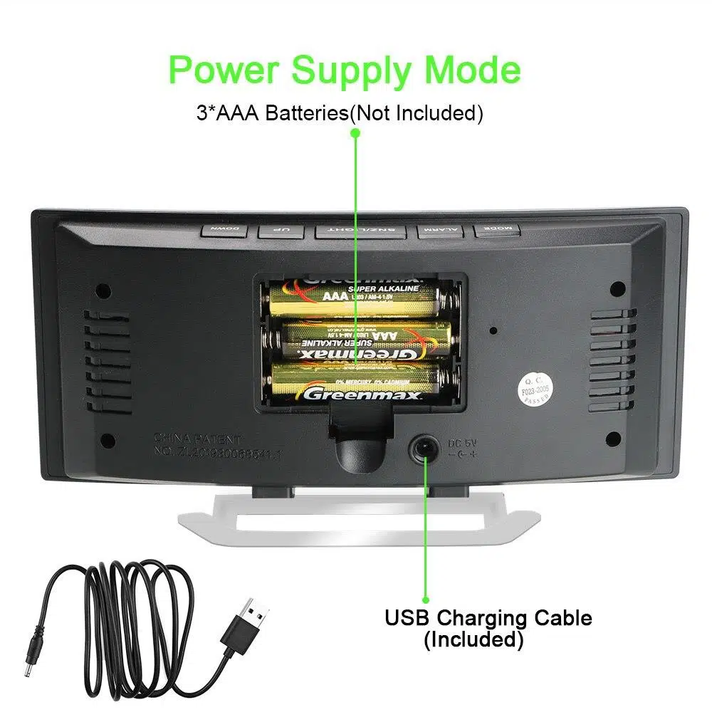 Valkyrie Alarmlı LED Dereceli Curved Dijital Masa Saati