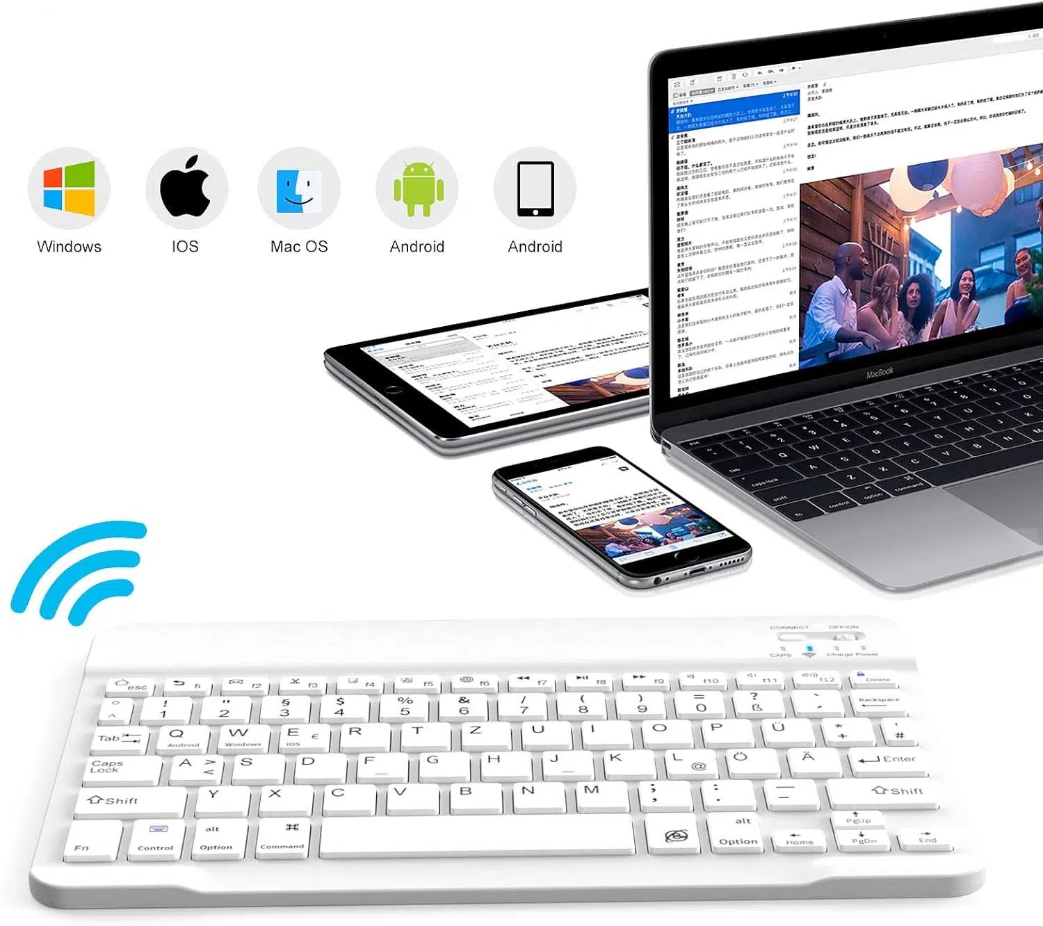 Geniş Uyumluluk: iPad / iPad Air / iPad Pro / iPad mini / iPhone / Samsung Galaxy Tab, Google Nexus / Windows / Mac gibi Android Tabletler dahil olmak üzere Bluetooth'u destekleyen dört ana işletim sisteminin tümü (iOS, Android, Mac OS ve Windows) ile kullanın , vesaire.