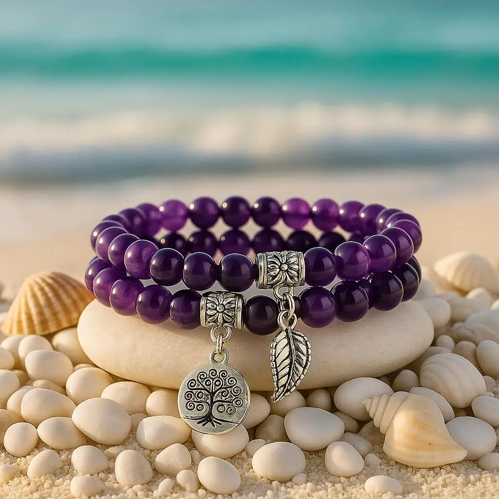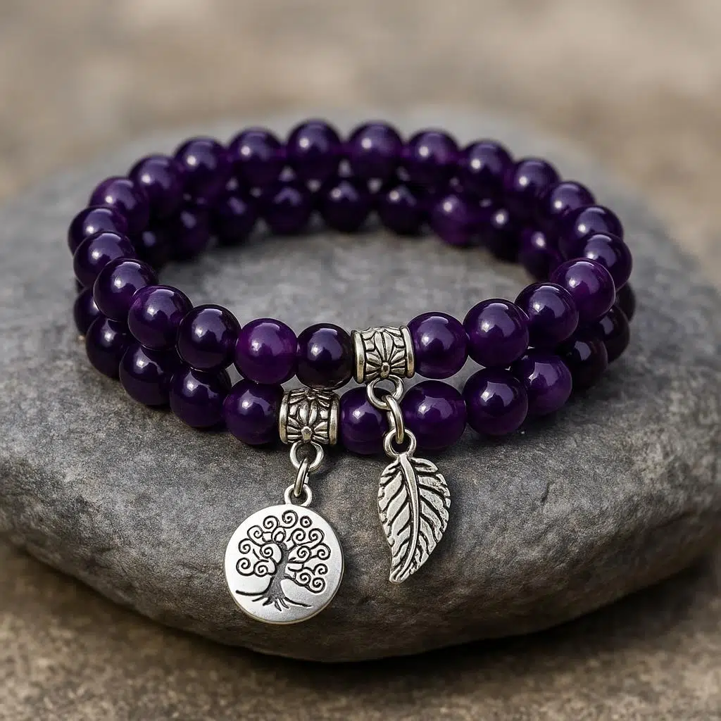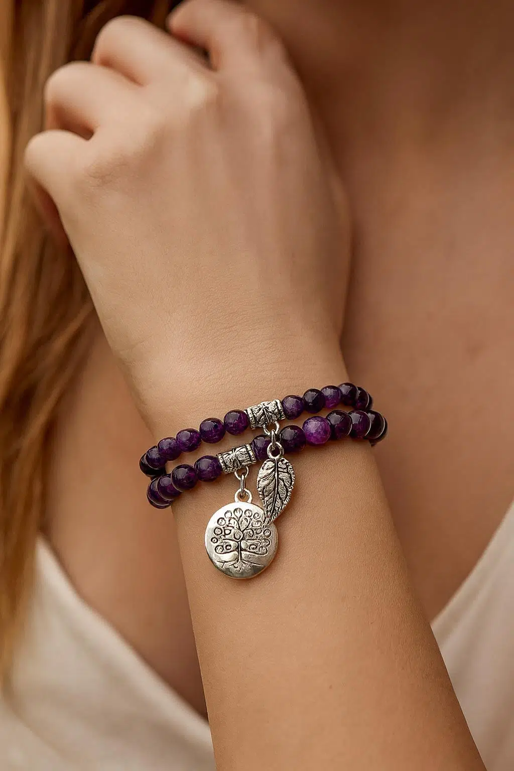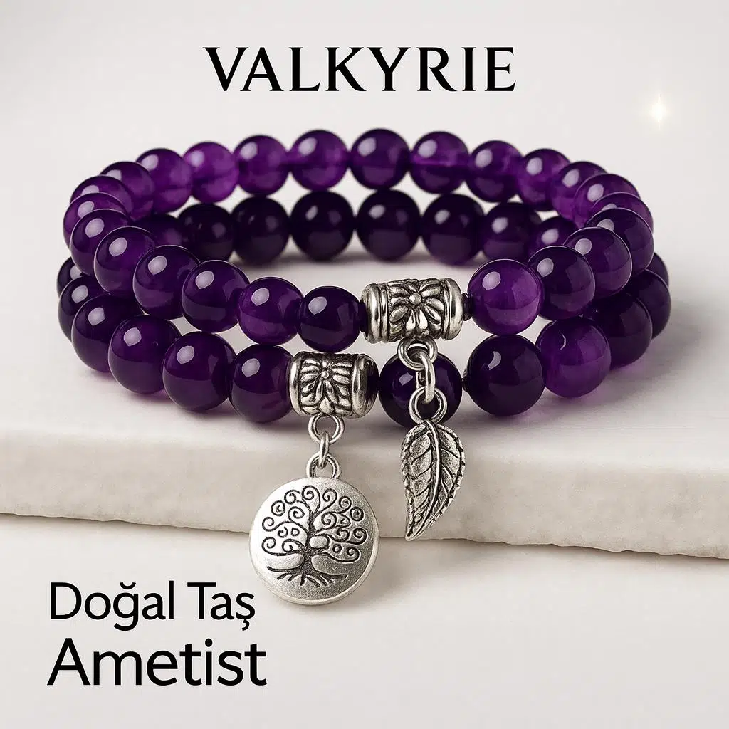 doğal taş bileklik, ametist bileklik, el yapımı bileklik, çift kat bileklik, mor taş bileklik, enerji taşı, meditasyon bilekliği, spiritüel takı, kadın erkek bileklik, hediye bileklik, Valkyrie bileklik