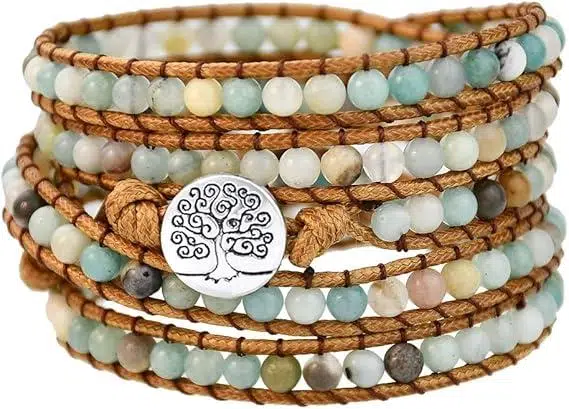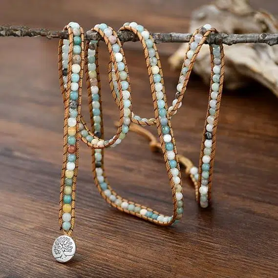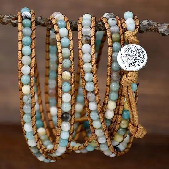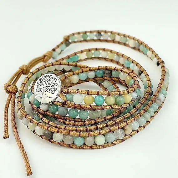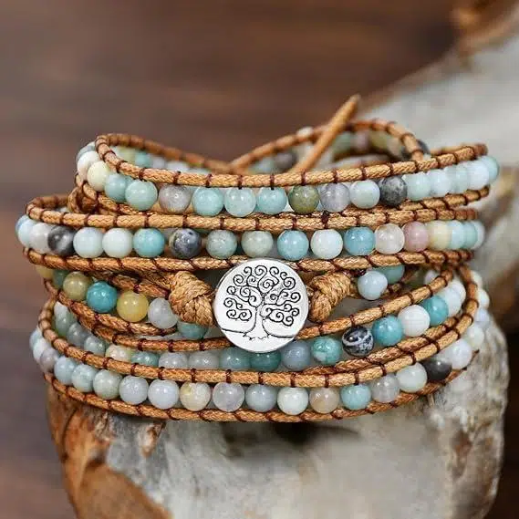 doğal taş bileklik, amazonit bileklik, boho bileklik, hayat ağacı bileklik, el yapımı bileklik, kadın bileklik, çoklu wrap bileklik, deri bileklik kadın, enerji taşlı bileklik, valkyrie takı