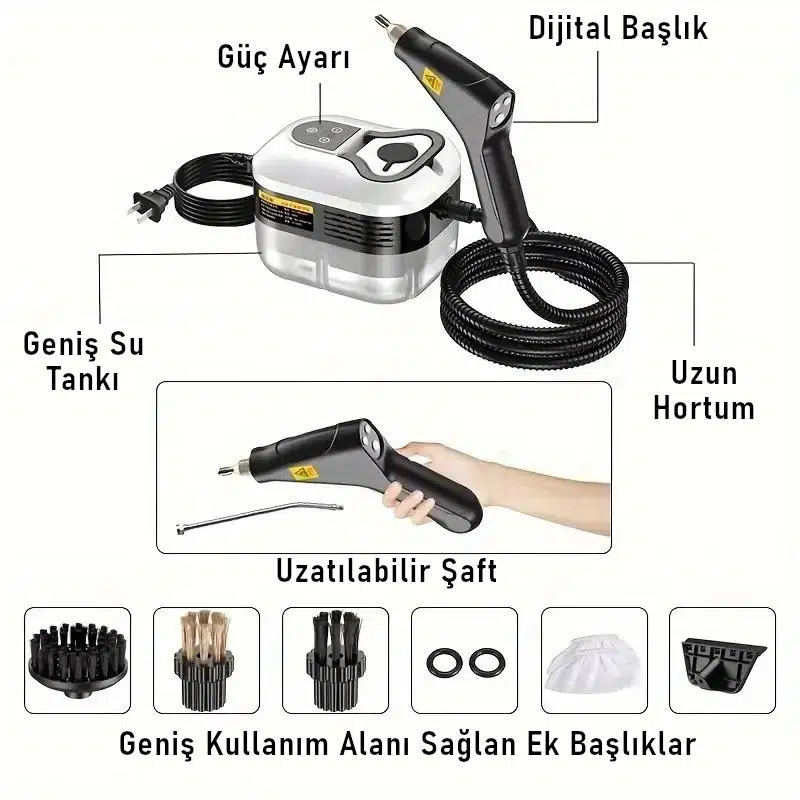 2500W Yüksek Güç → Zorlu kirleri, yağ ve lekeleri kolayca söker.