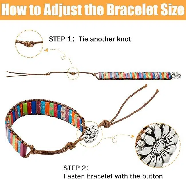 Her bileklik ustalıkla düğümlenmiş %100 el yapımıdır. Bileğinizin ölçüsüne göre kolayca ayarlanabilir yapıdadır.