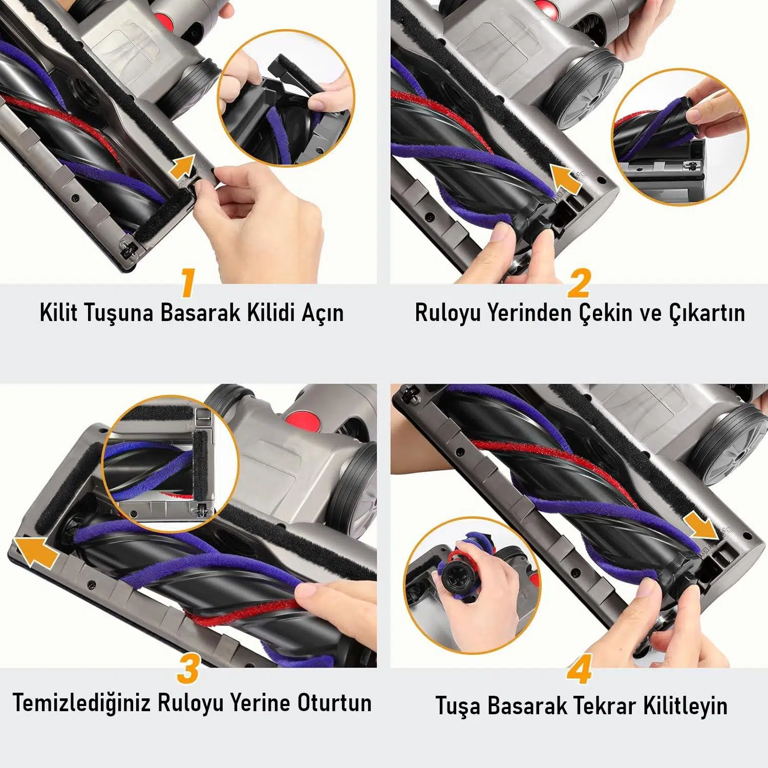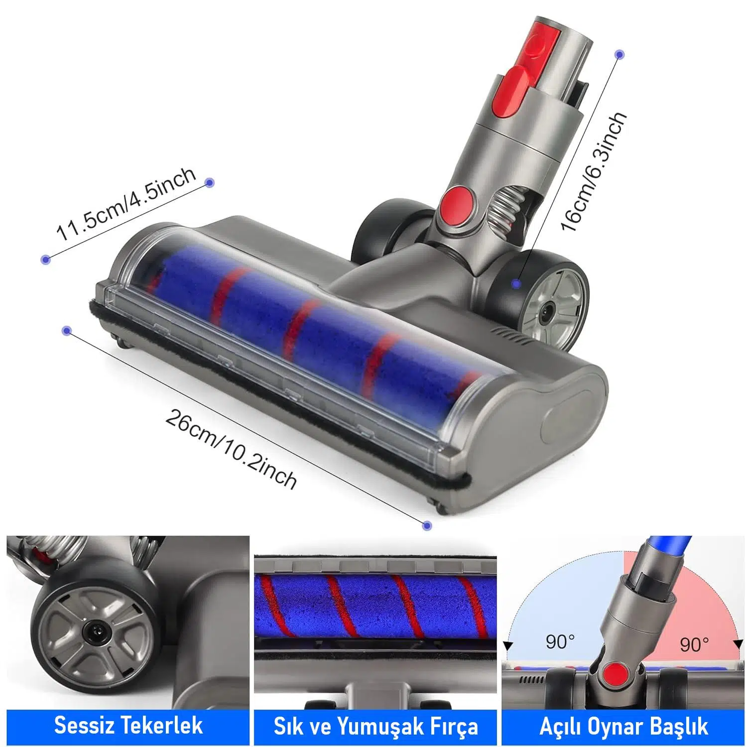 Dyson elektrikli fırça başlığı, döner fırça Dyson, zemin fırçası Dyson uyumlu, Dyson V11 fırça başlık, Dyson V10 elektrikli başlık, Valkyrie süpürge aksesuarı.