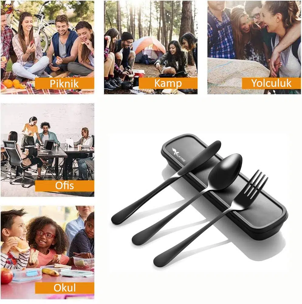 * Herhangibi bir restauranta gittiğinizde önünüzdeki çatalın yıllar boyunca binlerce insan tarafından kullanıldığını, binlerce kez farklı ağızlara girip çıktığını hayal edin. Yada çocuğunuzun okul yemekhanesinde hangi şartlarda ne kadar hijyenik olduğunu bilmediğiniz bir kaşık ile yemek yerken düşünün. Bu kişisel çatal, bıçak, kaşık seti bütün bu hijyen problemlerinize çözüm üretecektir. Ayrıca kamp, ofis, yolculuk kullanımı için idealdir.