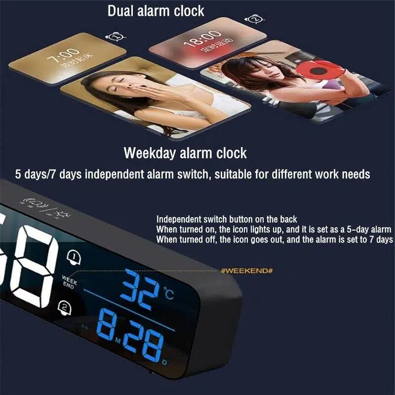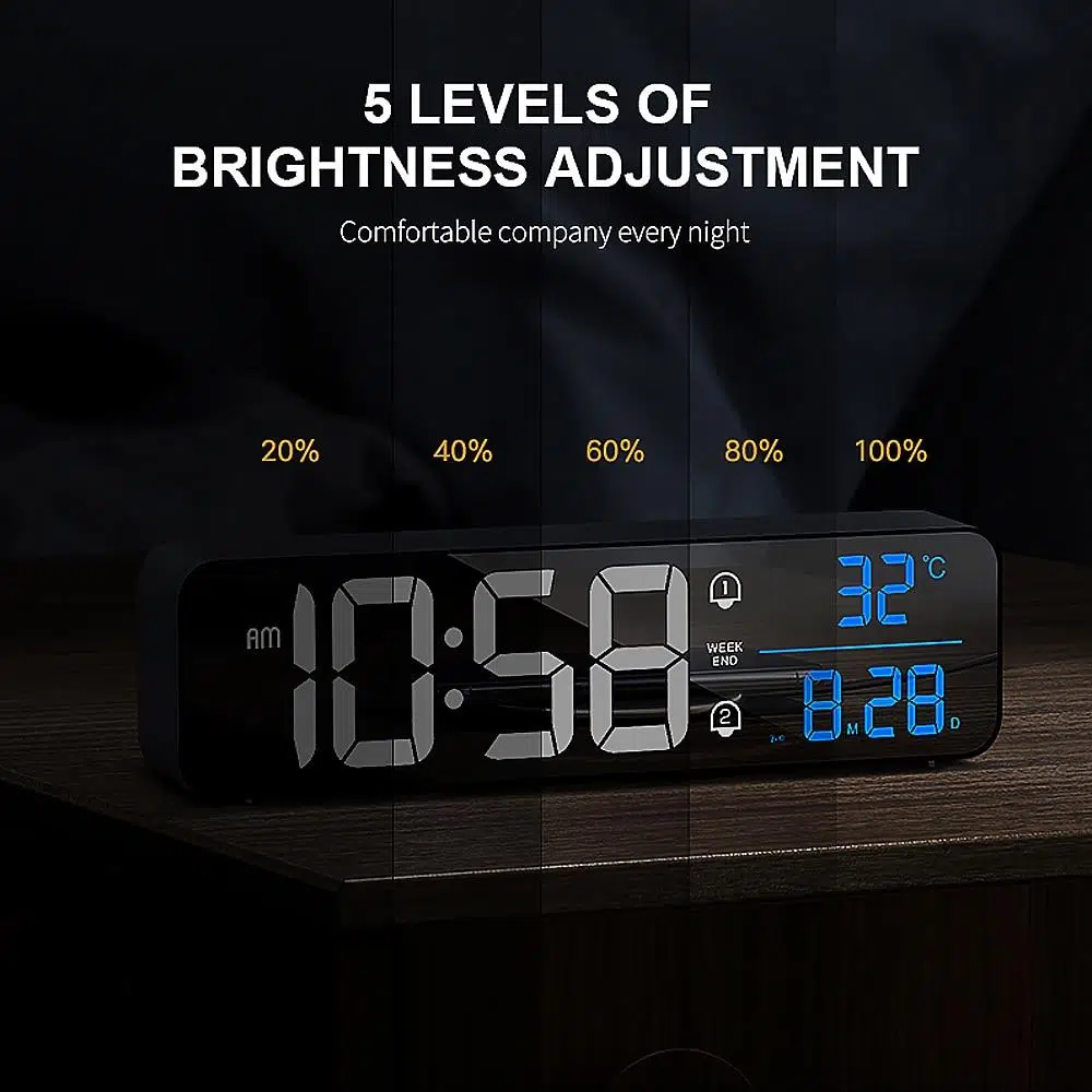 Valkyrie LED Aynalı Dereceli 2400mAh Dijital Duvar Masa Saati