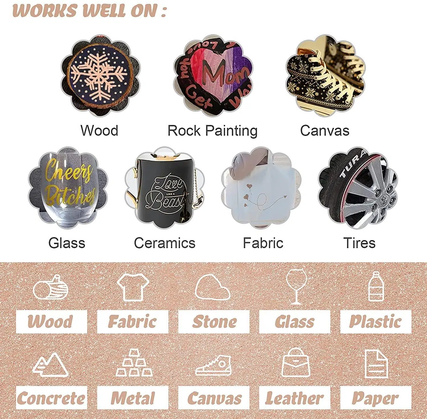3. HERHANGİ BİR YÜZEY-Hayal gücünüz ve yaratım yüzeyinizle neredeyse tüm pürüzsüz yüzeylere yazar. giysiler, taş kalemler, seramik, ayakkabılar, cam, aynalar, pencereler, plastik, kumaş, ahşap, kanvas, kağıt, kara tahtalar, metal, gövde, arabalar vb. üzerine kolayca yazmanıza olanak tanır.