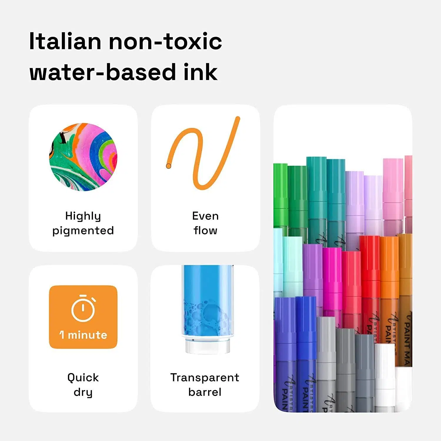 2. SU BAZLI VE TASARRUF - Akrilik İşaretleme Kalemleri, Toksik olmayan, kokusuz, asitsiz, çevre dostu. Gençler, yetişkinler, sanatçılar ve sanat öğrencileri için mükemmeldir. Suya dayanıklı, UV dayanımlı. (3 yaşından küçük çocukların bir yetişkin gözetiminde kullanılmasını öneririz)