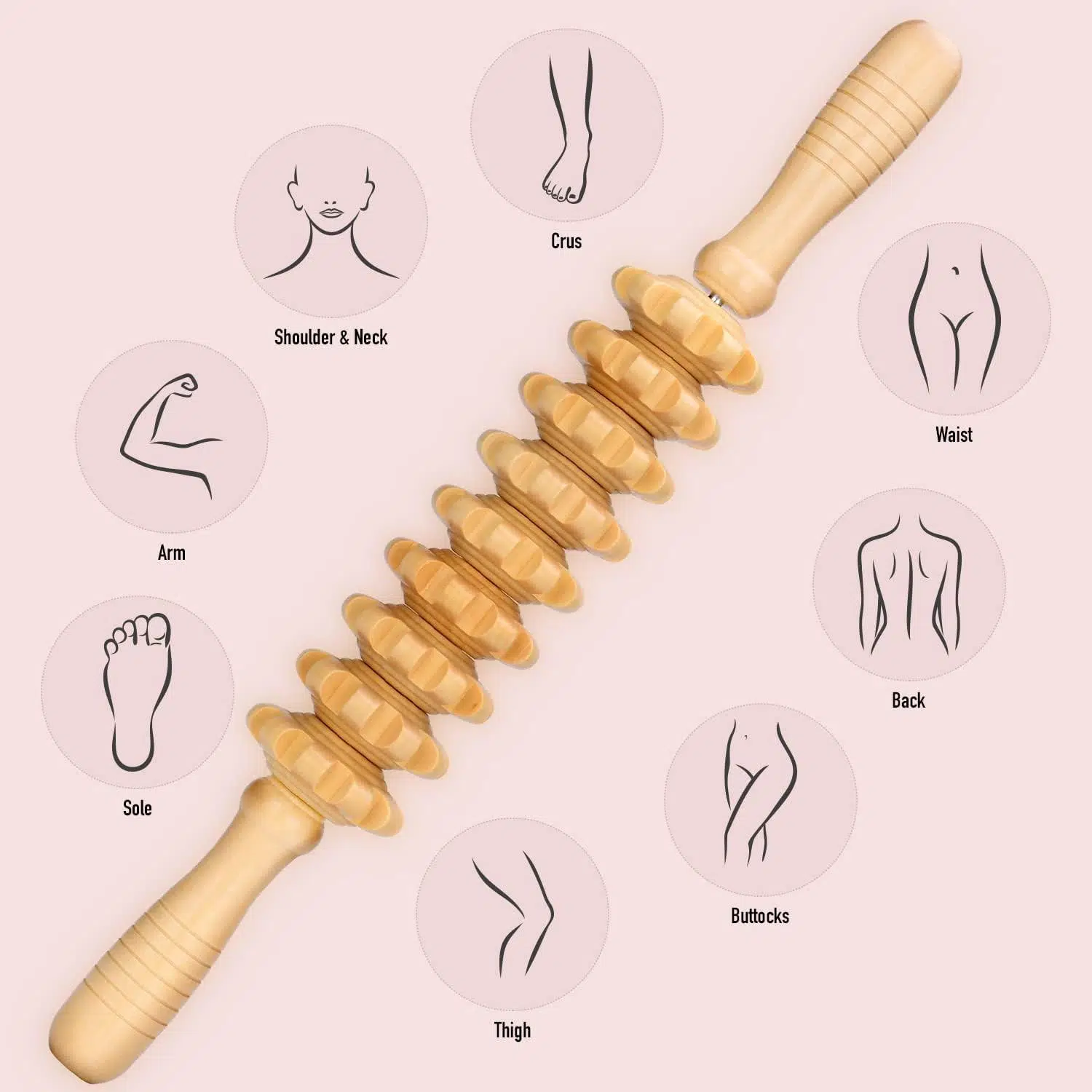 Çok Fonksiyonlu Kas Rahatlaması: Ahşap Masaj Rulosu ile kollar, bacaklar, kalçalar, kalçalar, uyluk, bel ve karın gibi birçok vücut bölgesindeki kas ağrılarını ve gerginliğini giderin.