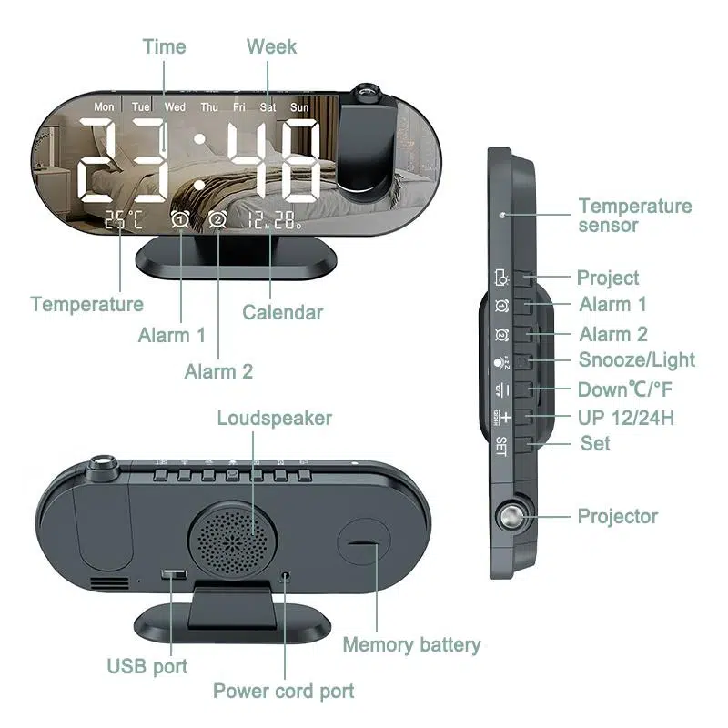 | Etiketler | Valkyrie Projeksiyon Çift Alarm Dereceli LED Masa Saati |