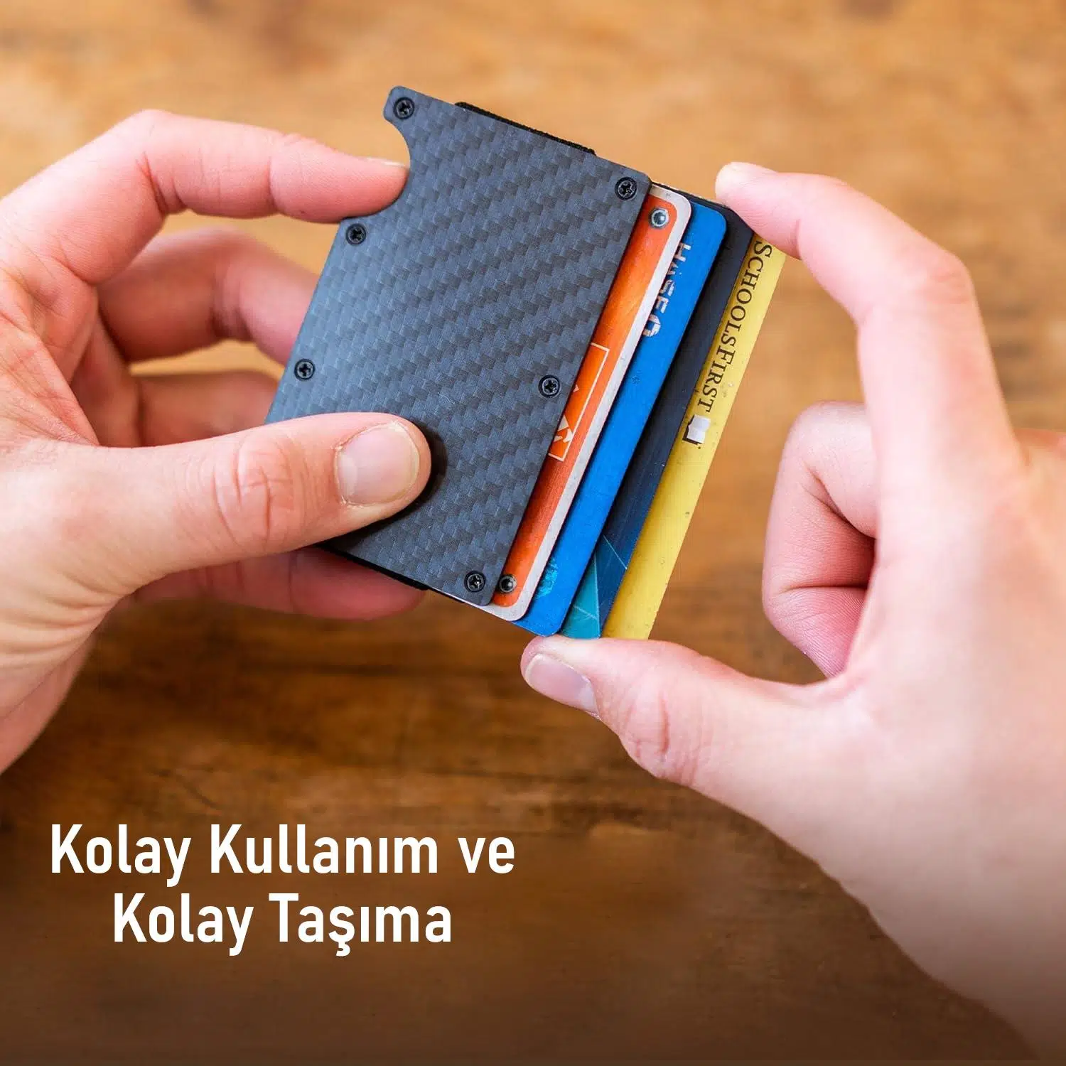 Kolay Kart Erişimi: Yenilikçi tasarımı sayesinde, tek bir parmak dokunuşuyla cüzdanınızdaki herhangi bir karta anında erişebilirsiniz. Kartlarınızı sıkışıp kalmadan veya cüzdanın içine dağılmadan rahatça kullanın.