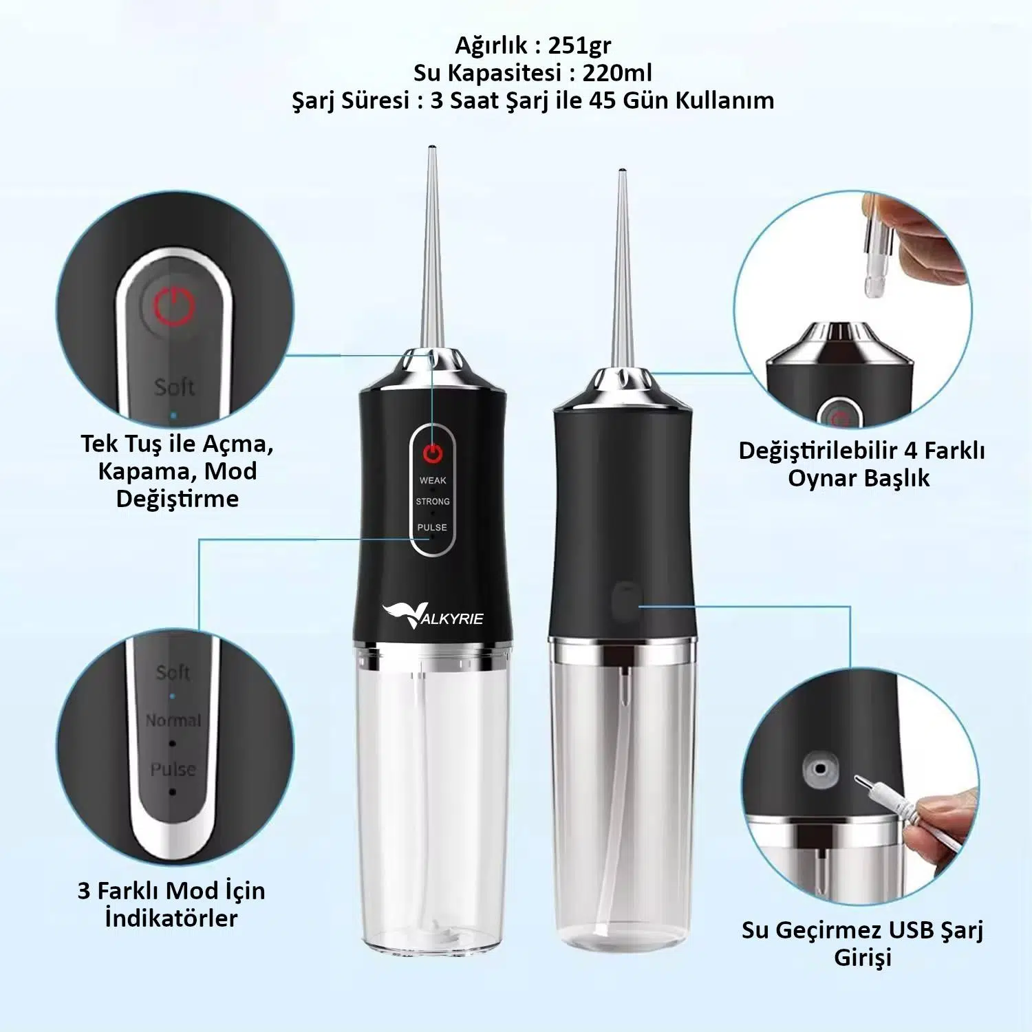 ? Valkyrie Şarj Edilebilir 4 Başlıklı Taşınabilir Diş Protez Bakım ve Ağız Duşu