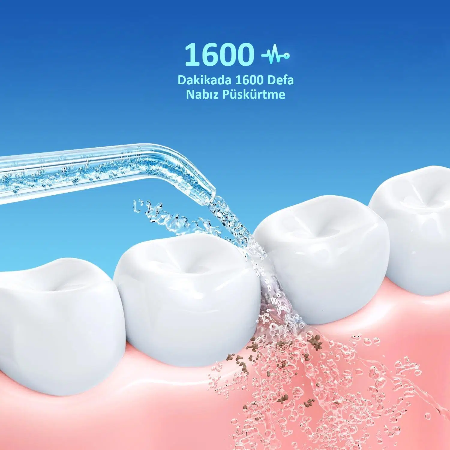 - 【Yüksek Basınç İle Derinlemesine Temiz Dişler】 Geleneksel diş ipi kullanımının ulaşamadığı tüm sıkışmış yerleri etkili bir şekilde çıkarmak için güçlü su basıncıyla benzersiz titreşim tekniğini geliştirdi.