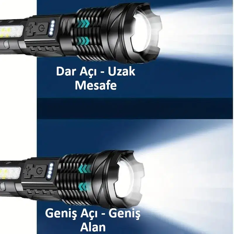 - Zoom özelliği ile uzak mesafeyi aydınlatmak için veya yakın mesafede geniş açı aydınlatmak için kullanılabilir.