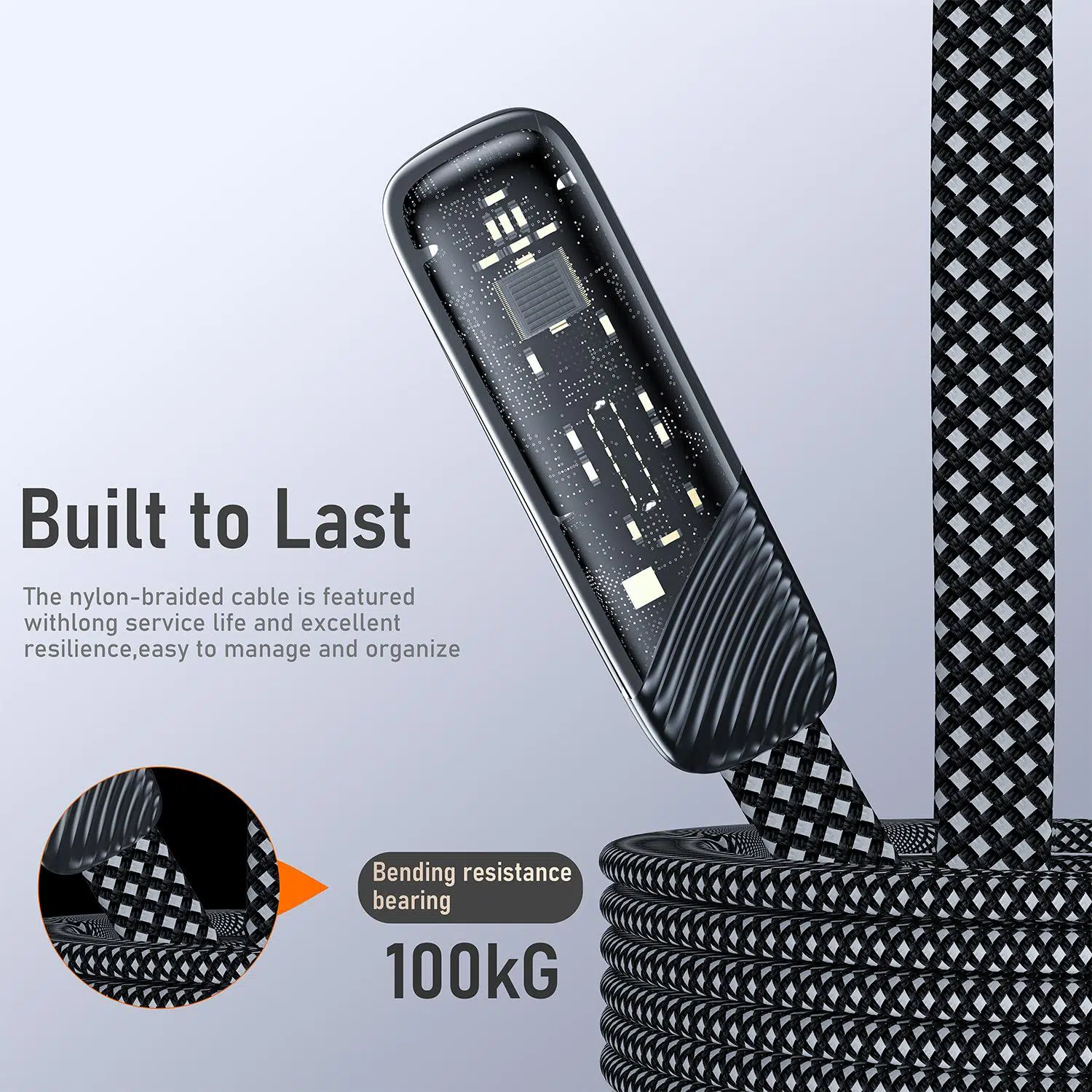 Dayanıklı ve Sağlam Yapı: Naylon örgülü dış kaplaması sayesinde bu kablo, günlük kullanıma ve aşınmalara karşı son derece dayanıklıdır. Özel olarak tasarlanmış bükülmeye karşı dirençli bağlantı noktaları 100 KG'a kadar basınca dayanabilir, böylece uzun ömürlü kullanım garanti edilir.