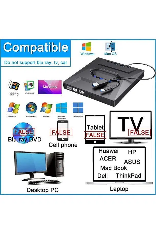 * Tak - Çalıştırdır. Herhangibi bir kurulum gerektirmez. CD/DVD rom, USB bağlantıları ve kart okuyucular için cihazı USB ile bilgisayarınıza bağlamanız yeterlidir.